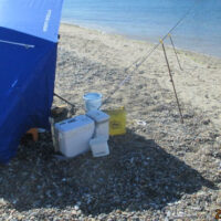 帰宅後、水槽の中にアユ缶を沈めた。