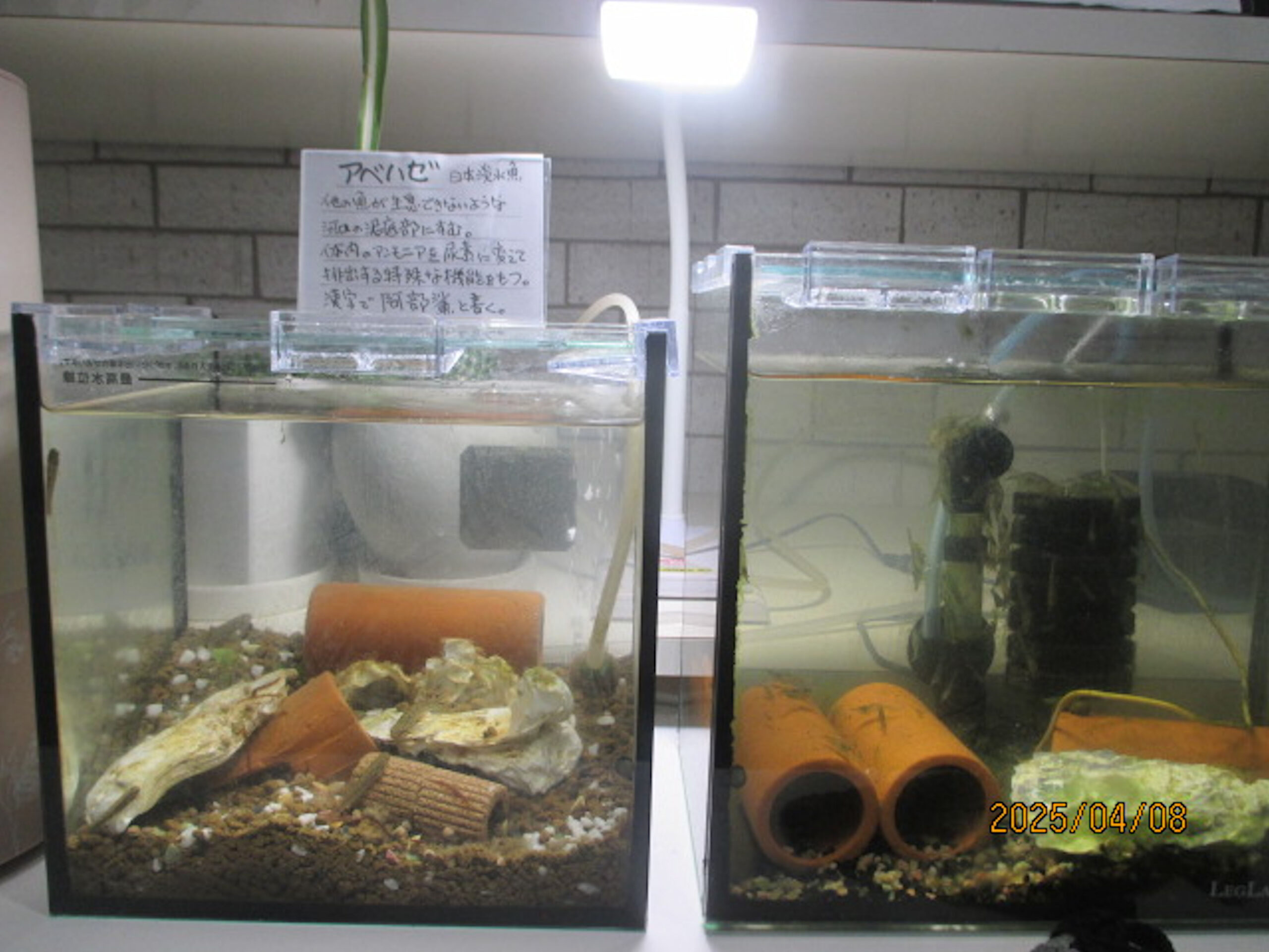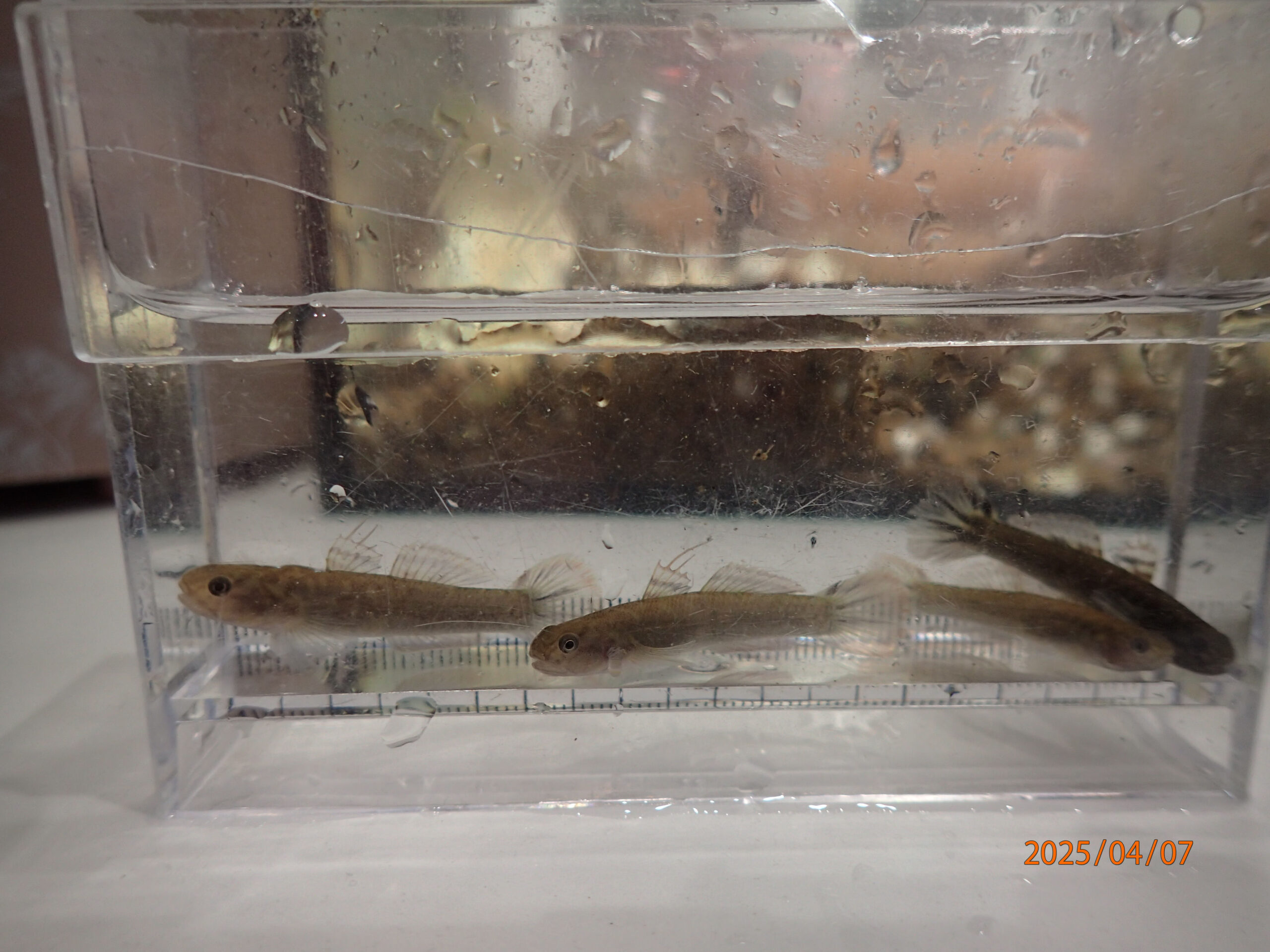前回捕獲したヨシノボリ。↑ すっかり水槽になじんだ。