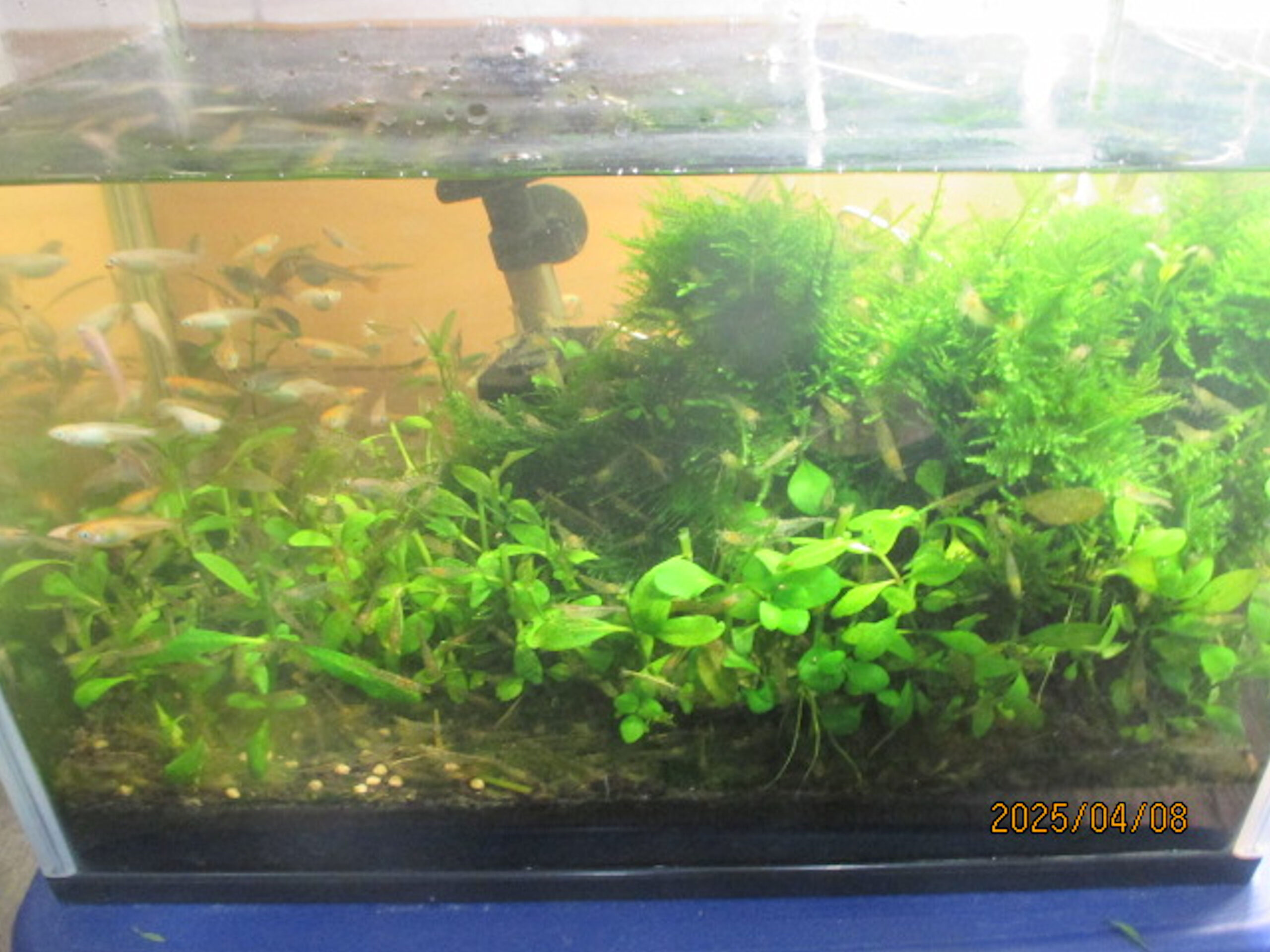 従来からのメダカとエビの水槽。↑