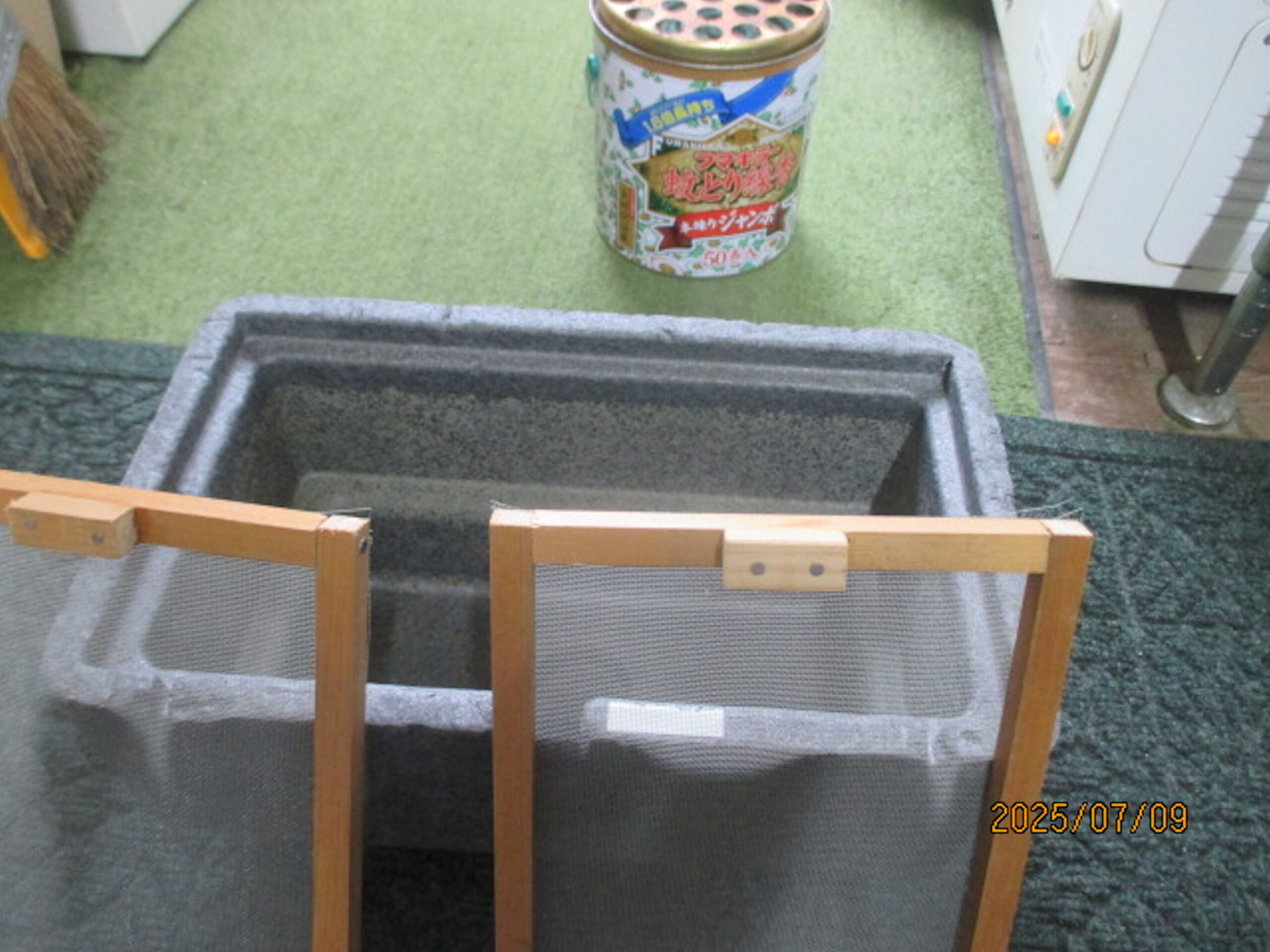 そこで孵化水槽と稚魚水槽の網戸を作ってみた。↓