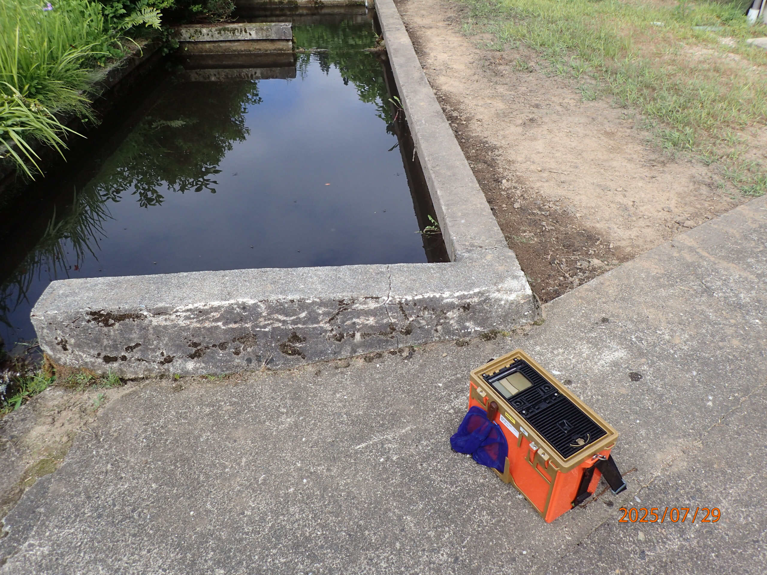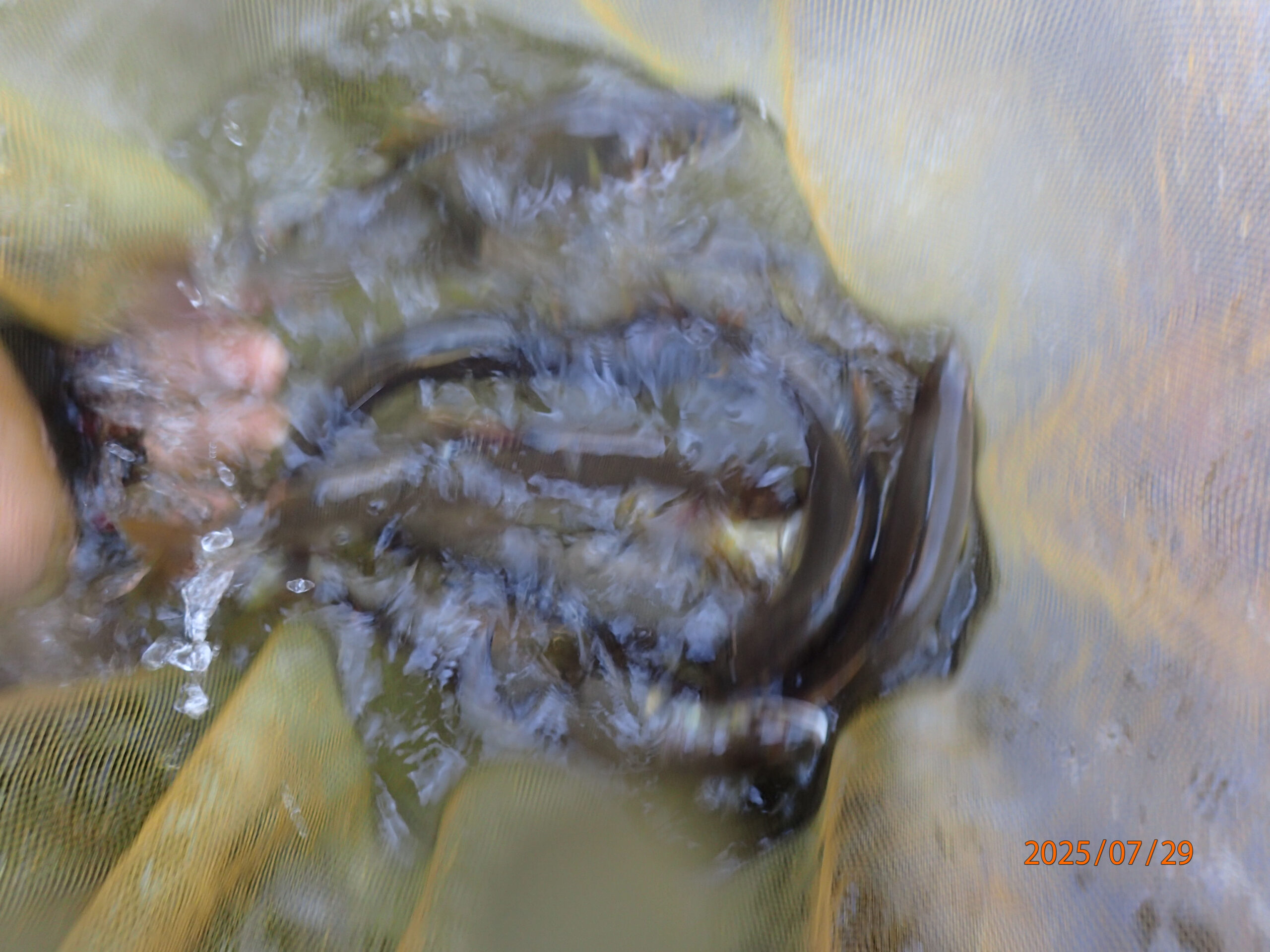 途中、Yちゃんち(娘の友人)の池にオトリ鮎を入れさせてもらった。↓