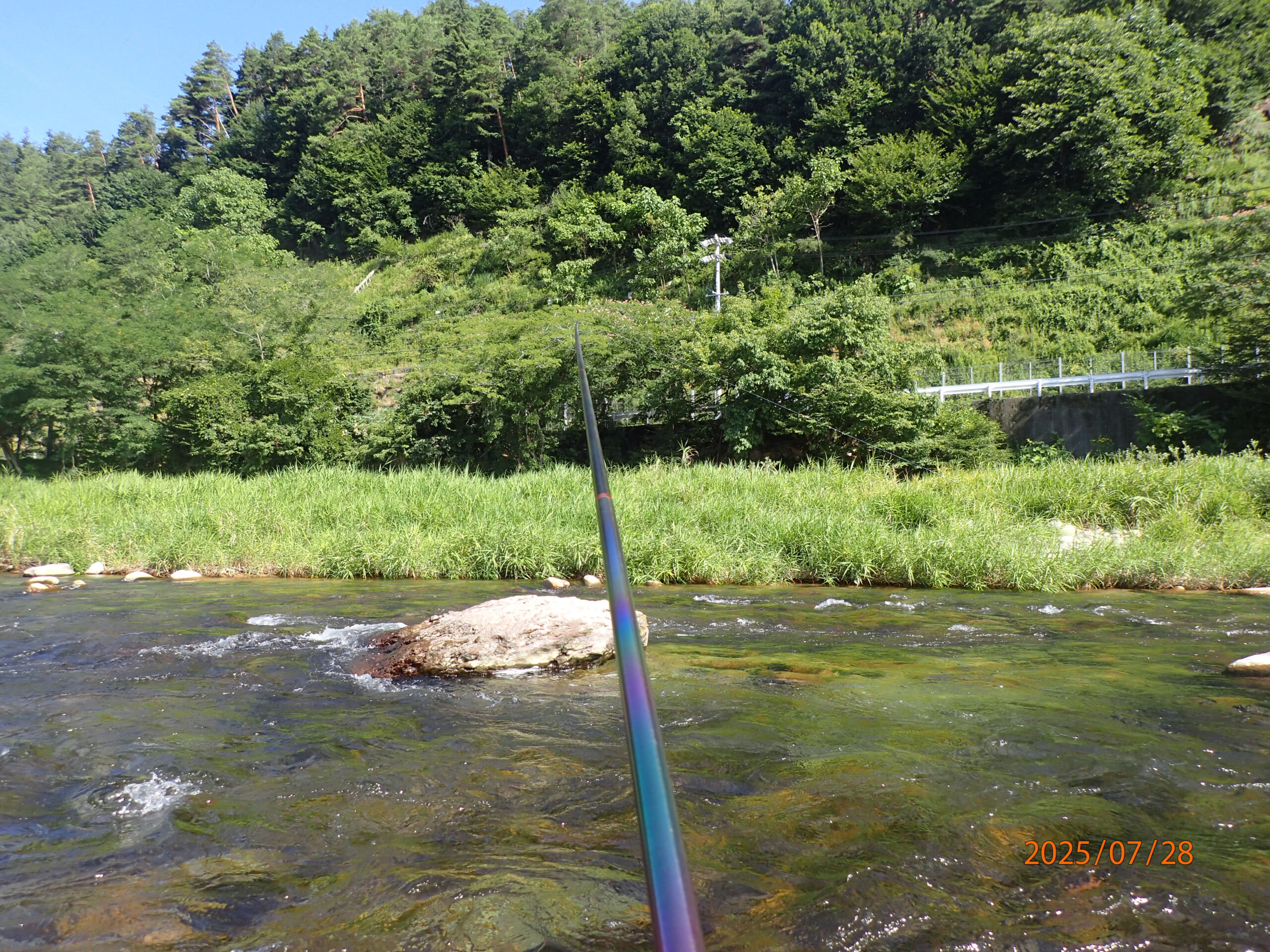 オトリ鮎が天然なので元気いっぱいに泳いでくれたが反応が薄く、1匹釣ると同じ場所では釣れなくなる。