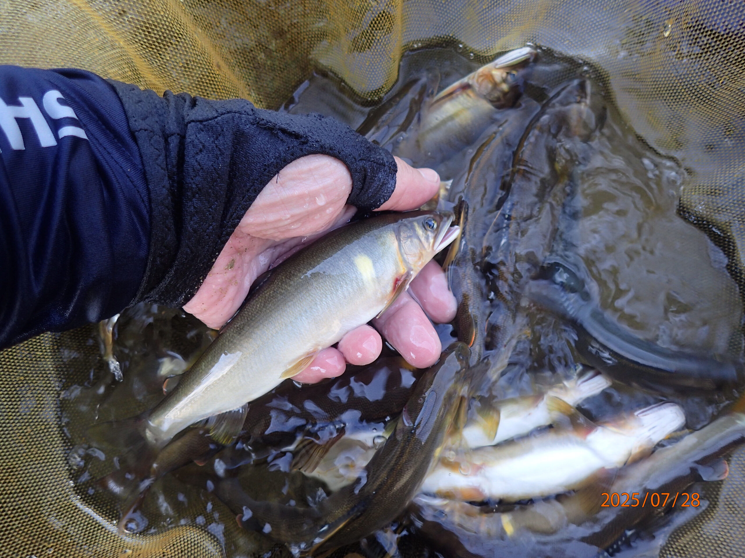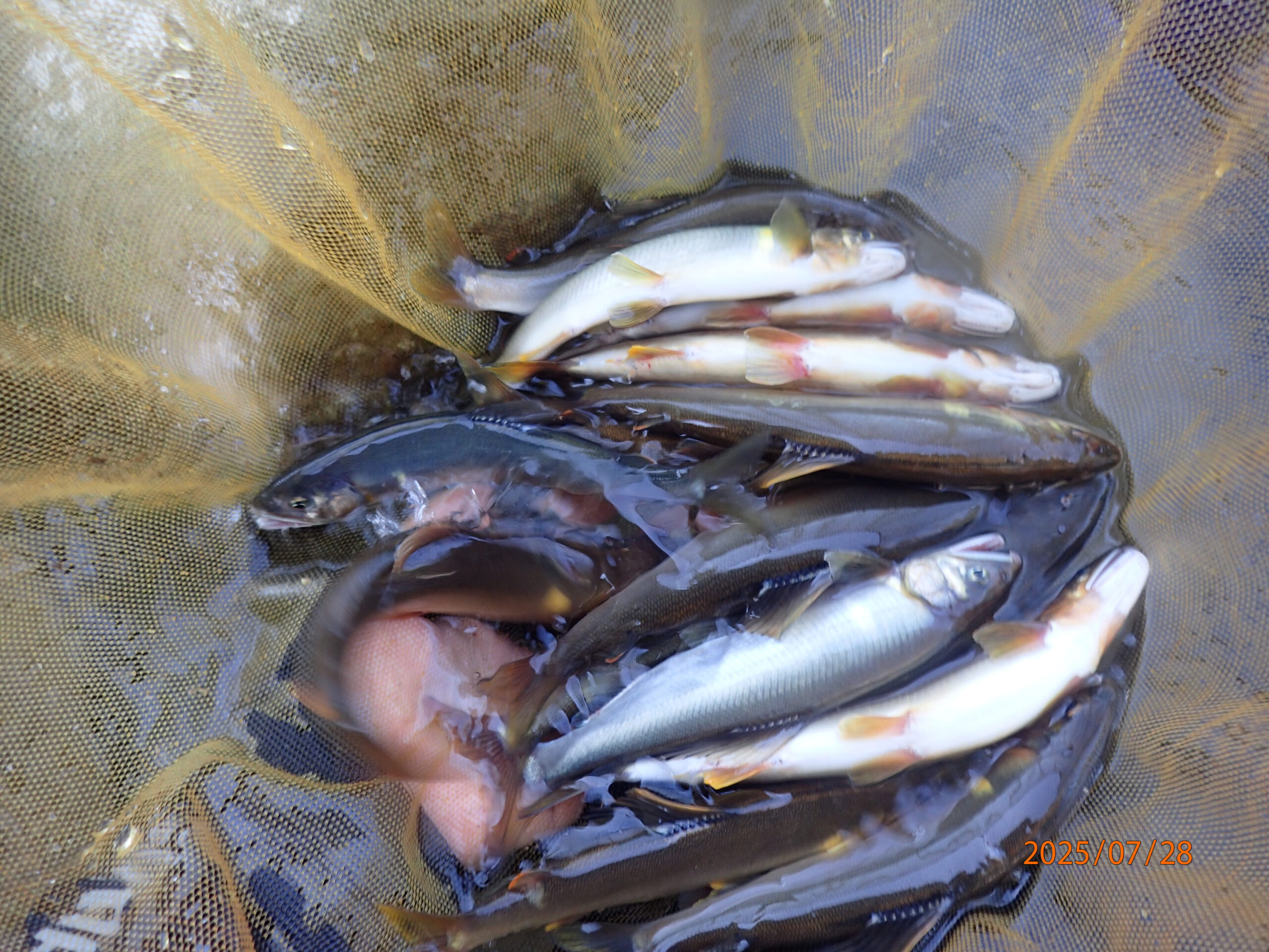 少しづつ上流にアユを泳がせながら移動して13時までに15匹釣って終了。↓