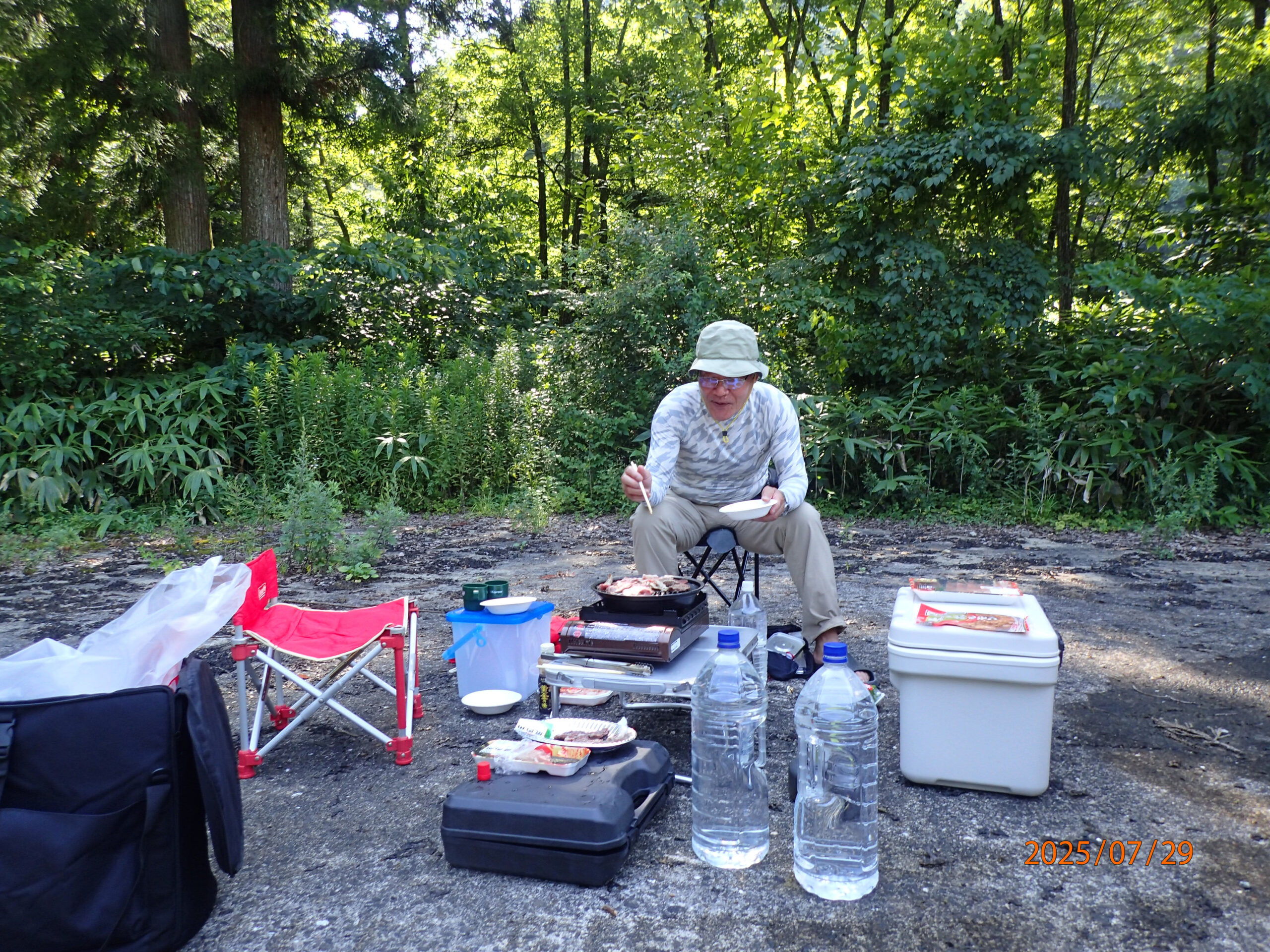 その後は渓流の音を聞きながら木陰でバーベキューを楽しんだ。↓