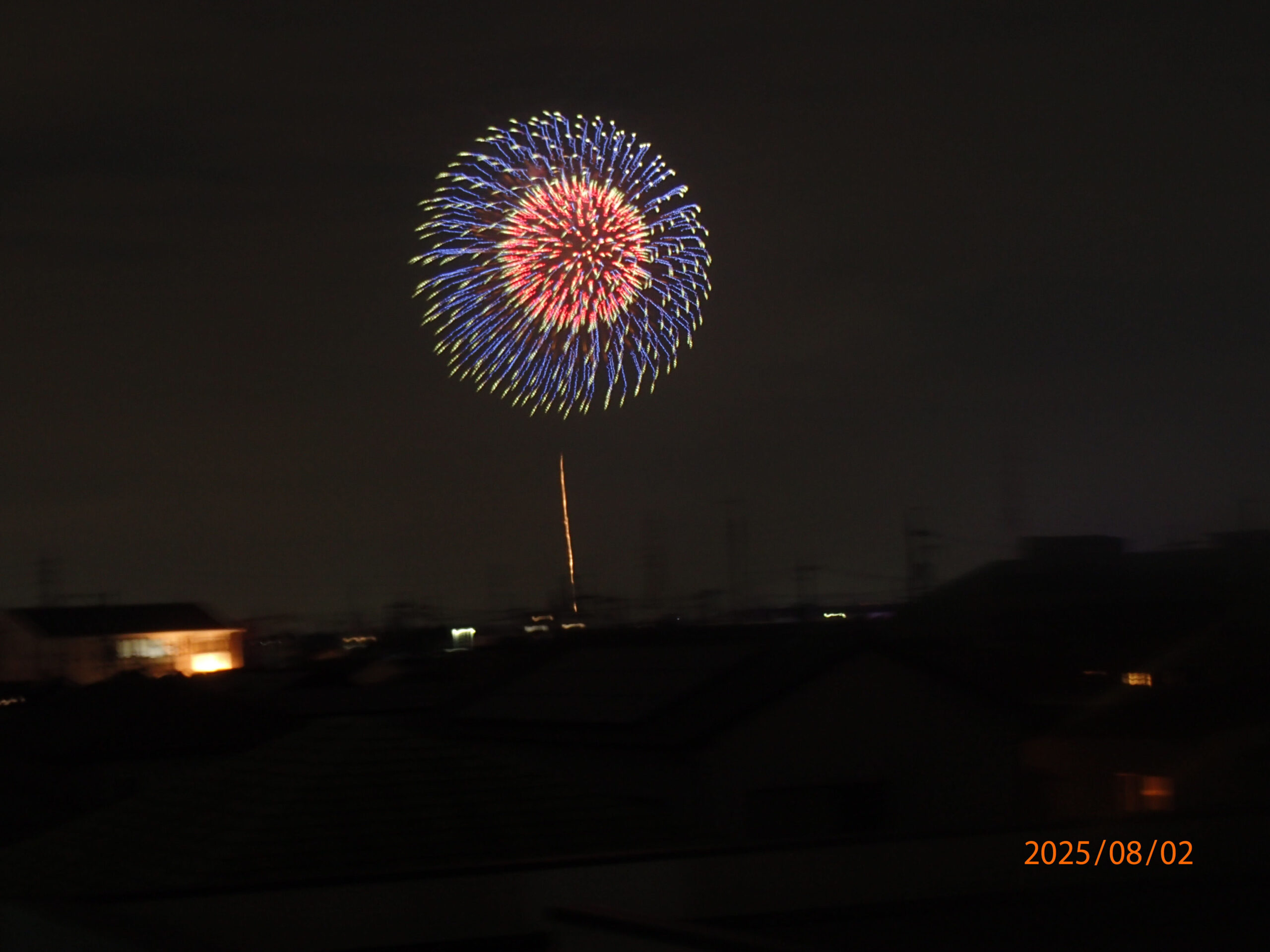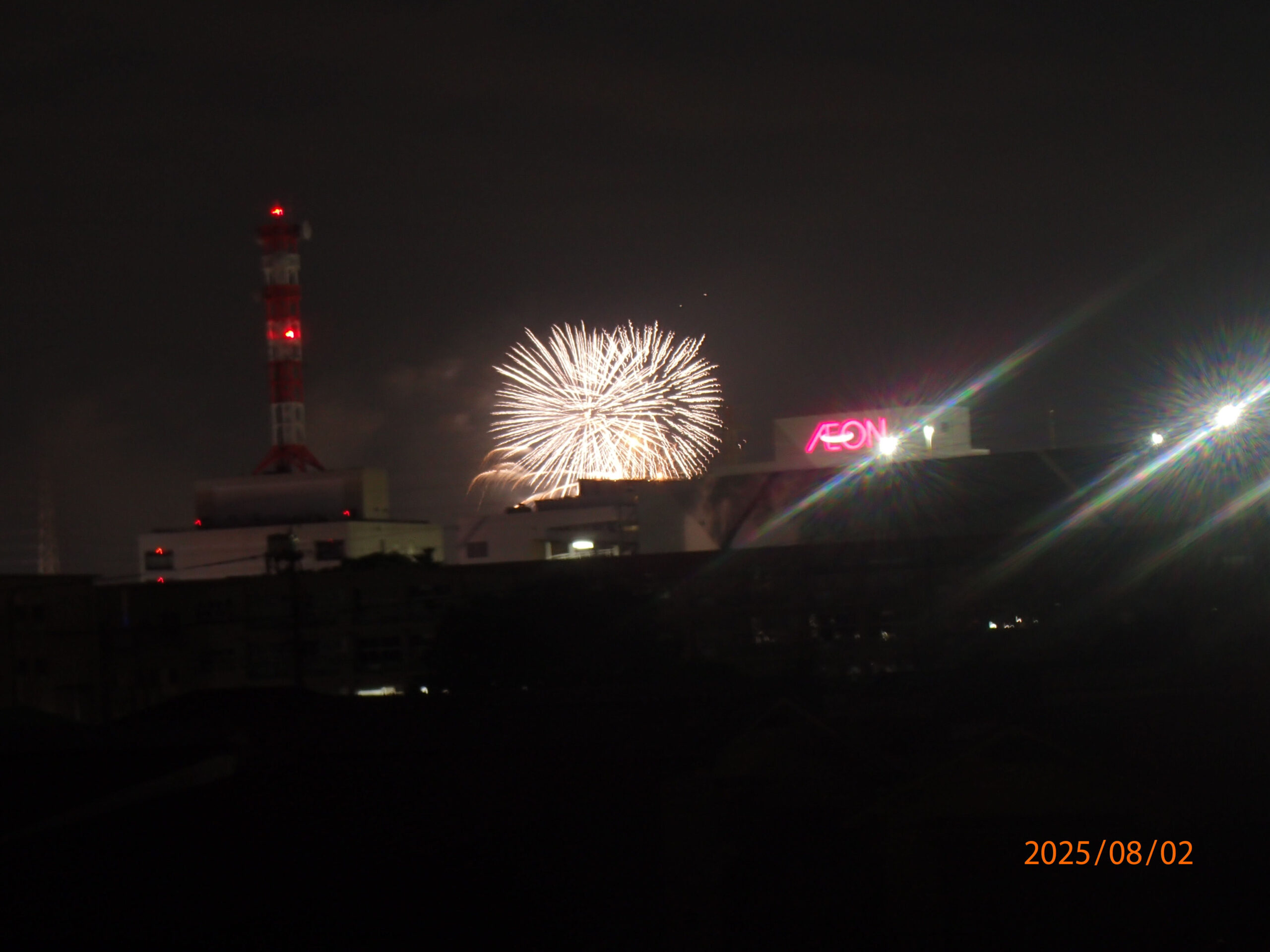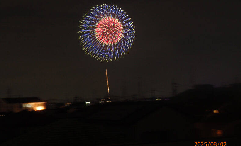 乙川から打ち上げられた花火。↑