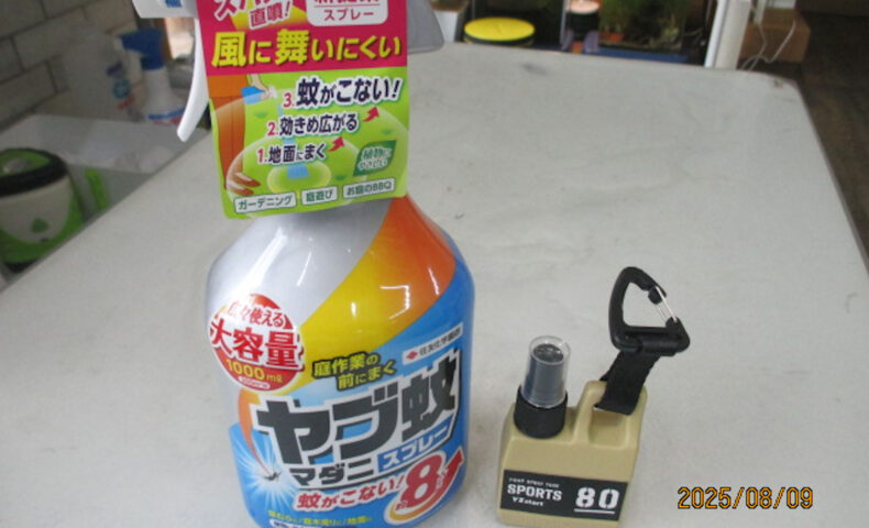 そこで僕はやぶ蚊スプレーとハッカ油スプレーを釣りに持参している。