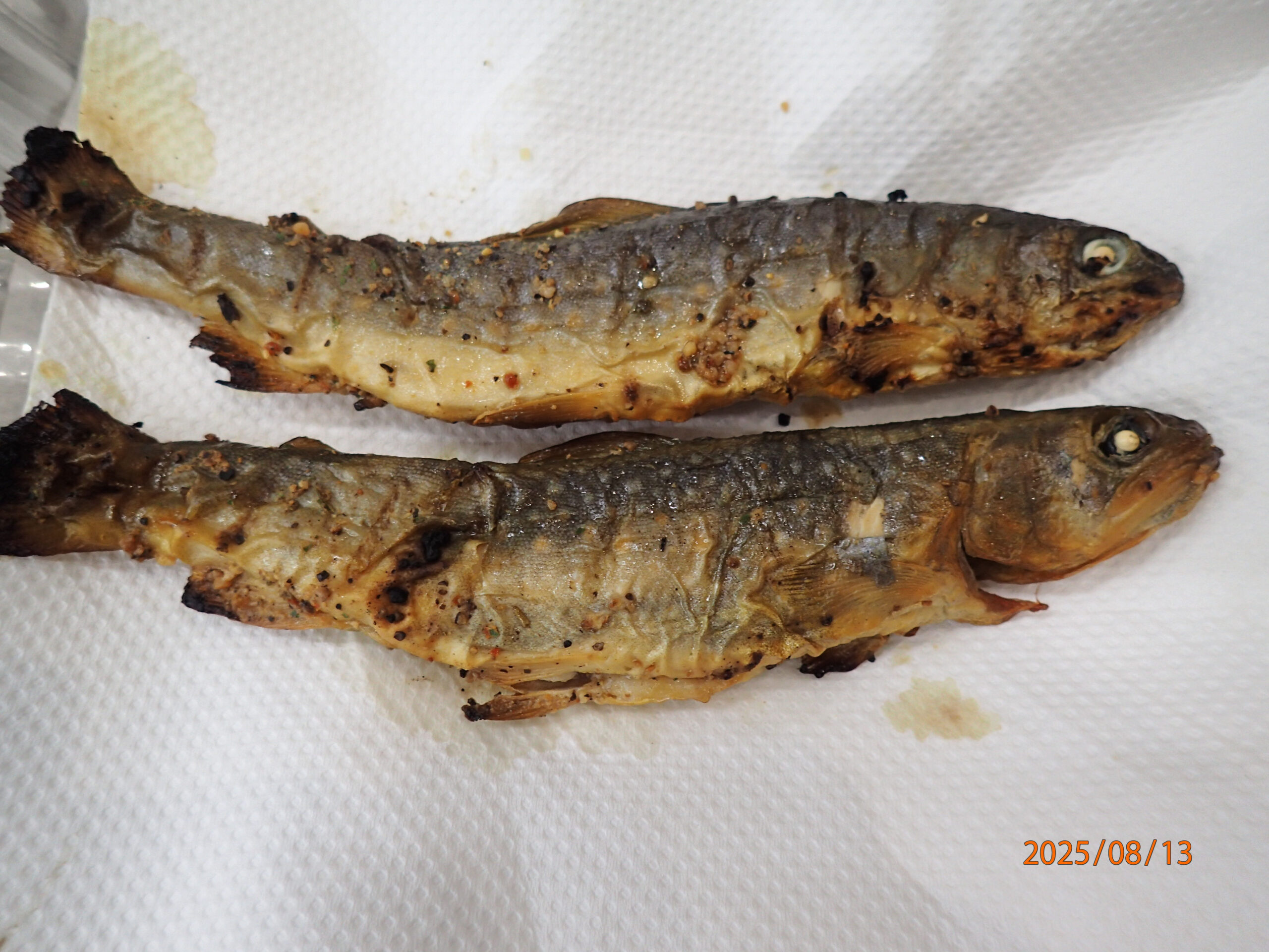 5時間かけて作ったイワナの燻製。僕の自信作。↑