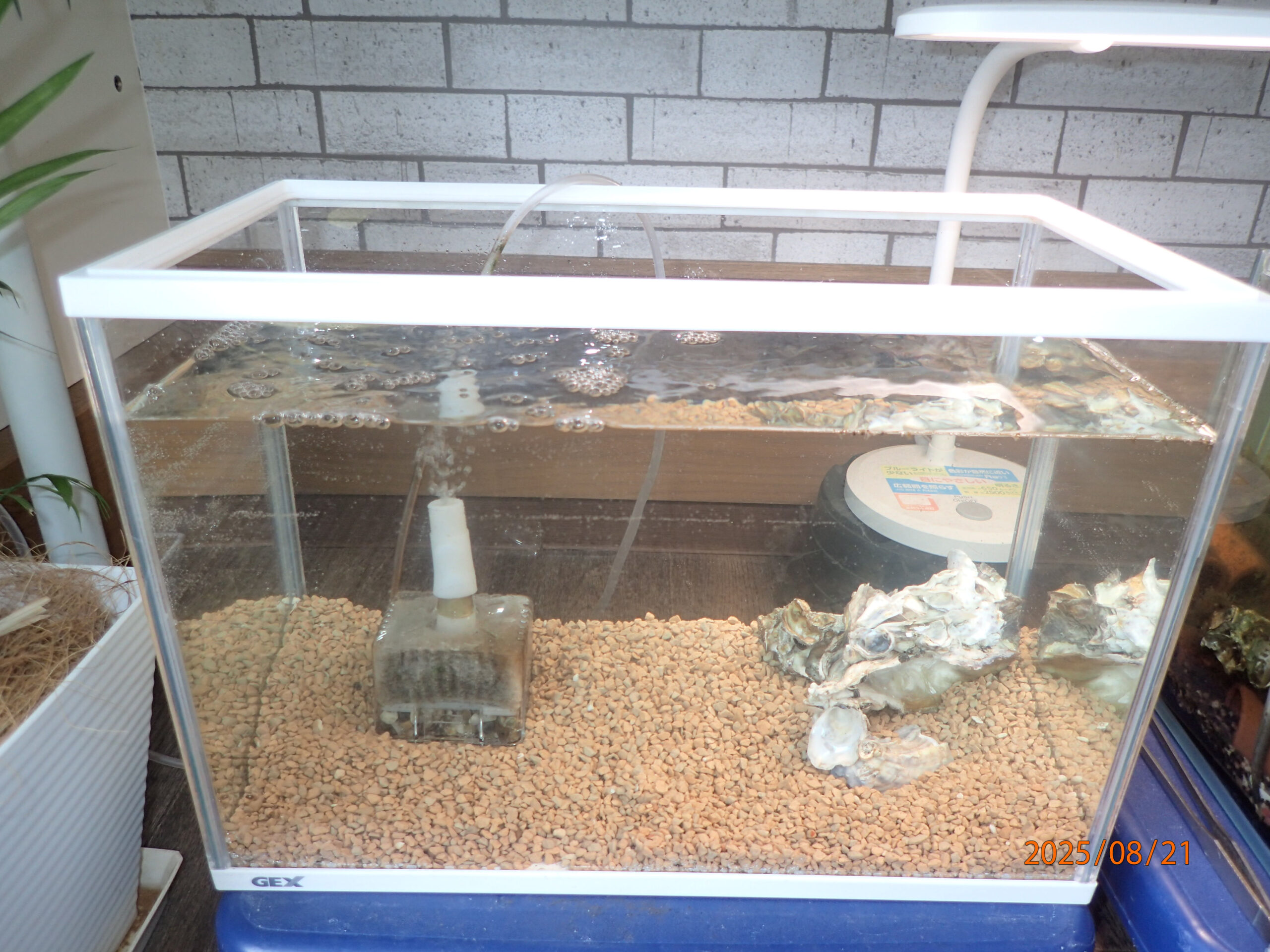 カルキ抜きした水道水を抜気して最適な環境にしているところ。