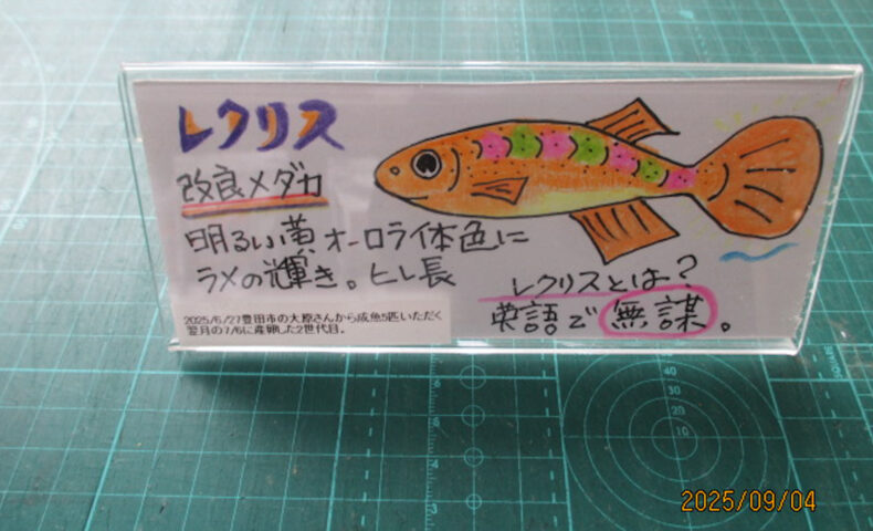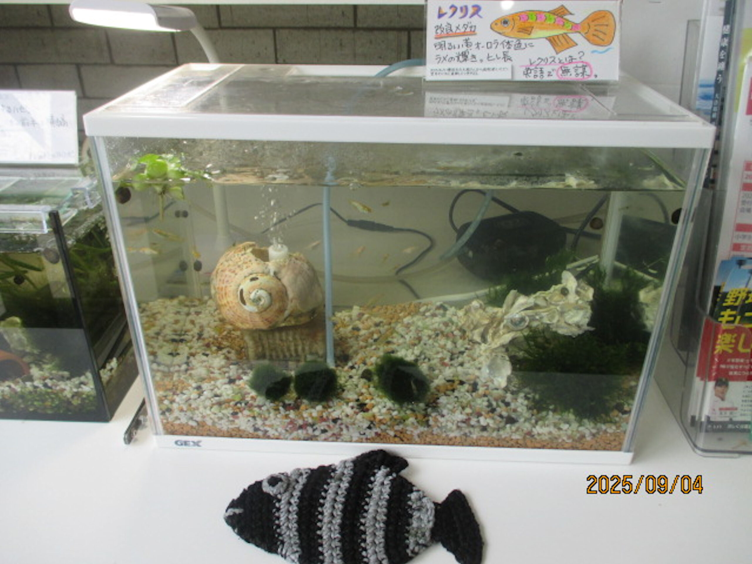 店内の入口に水槽があるのでメダカ好きのお客さまから質問をいただく。