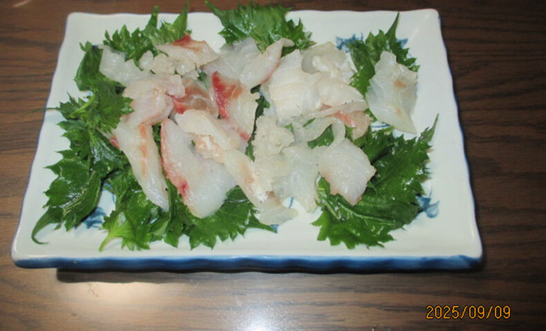 昨夜は釣ったクロダイを刺身にして食べた。↓