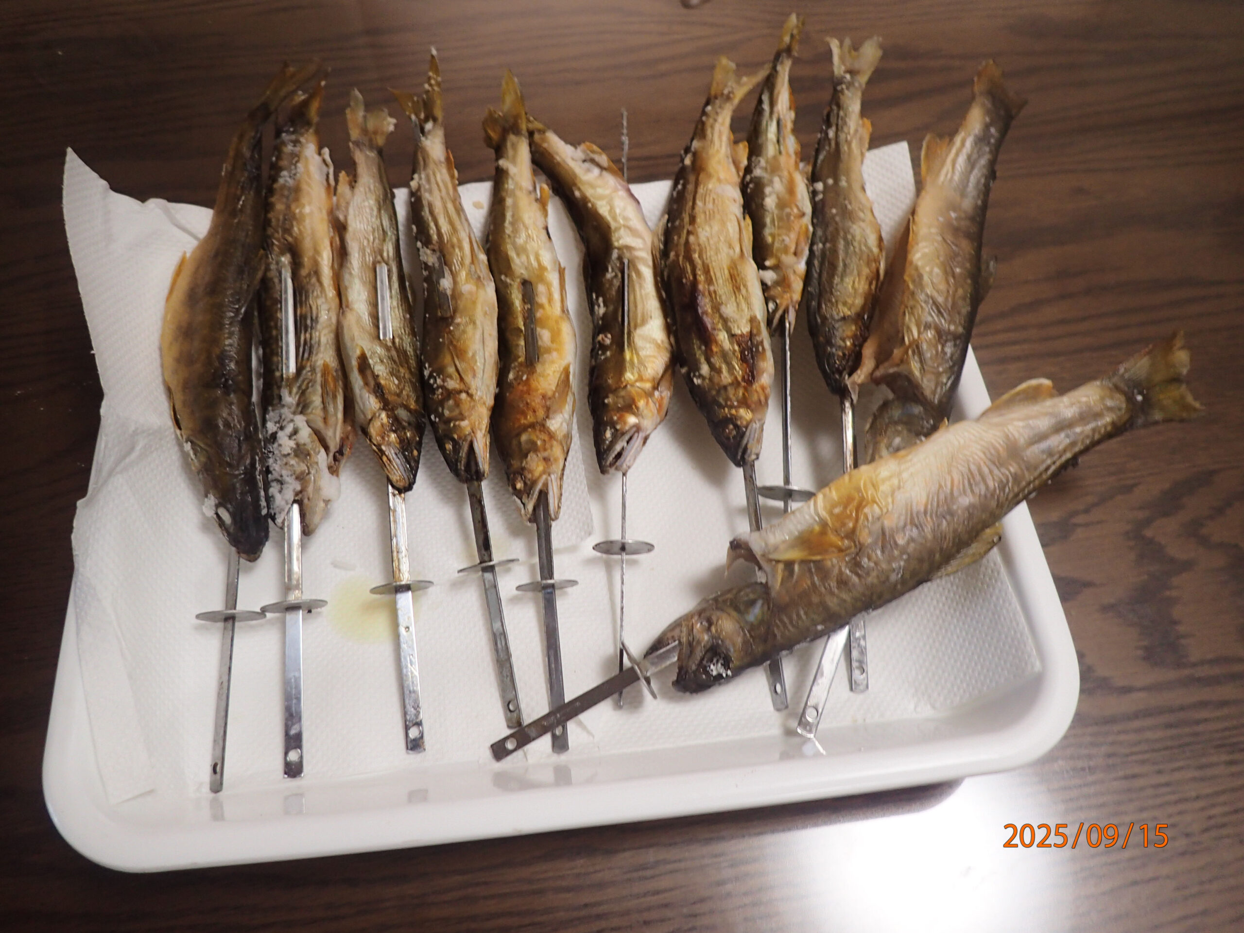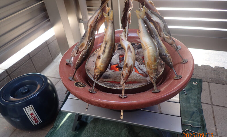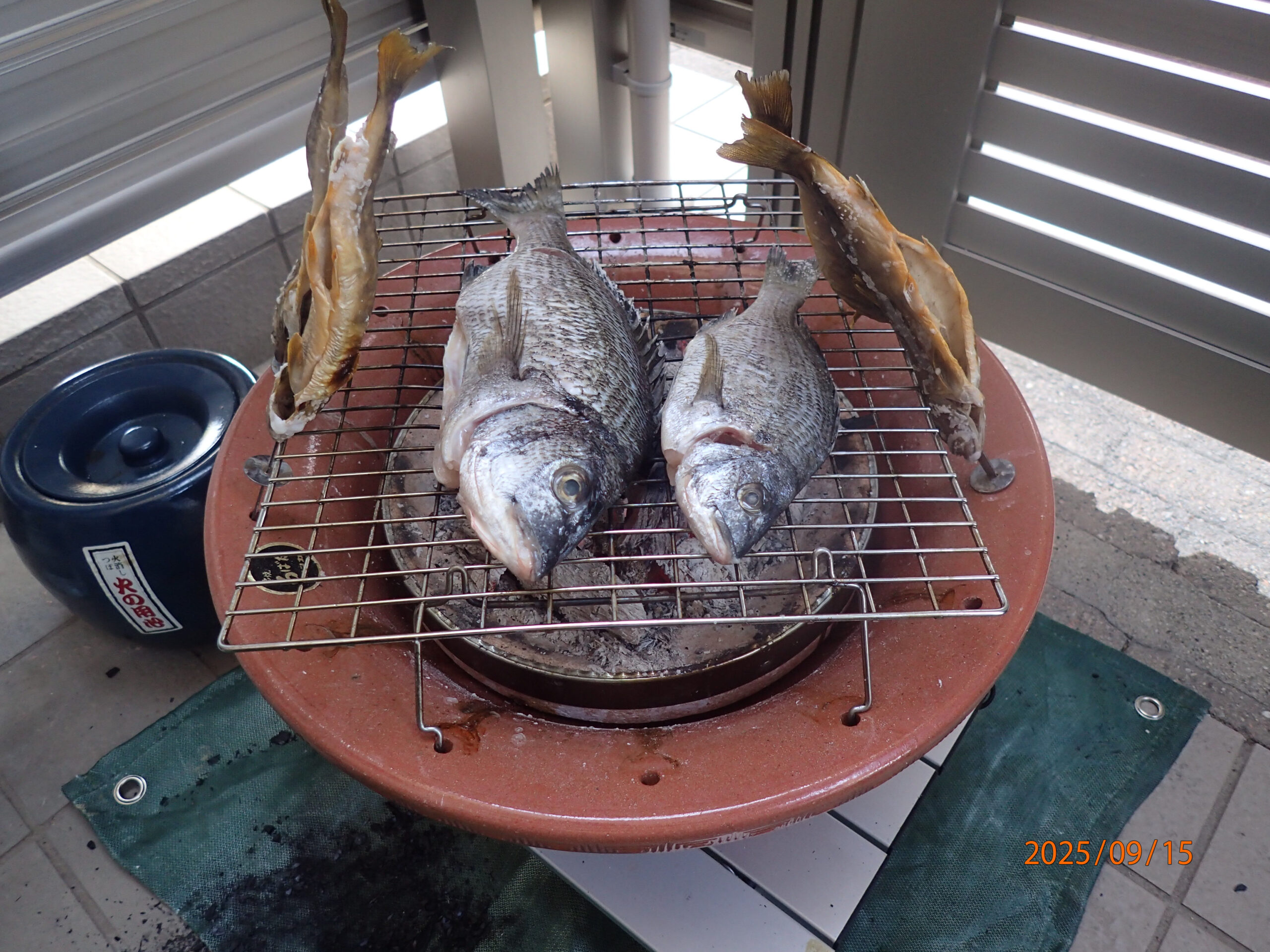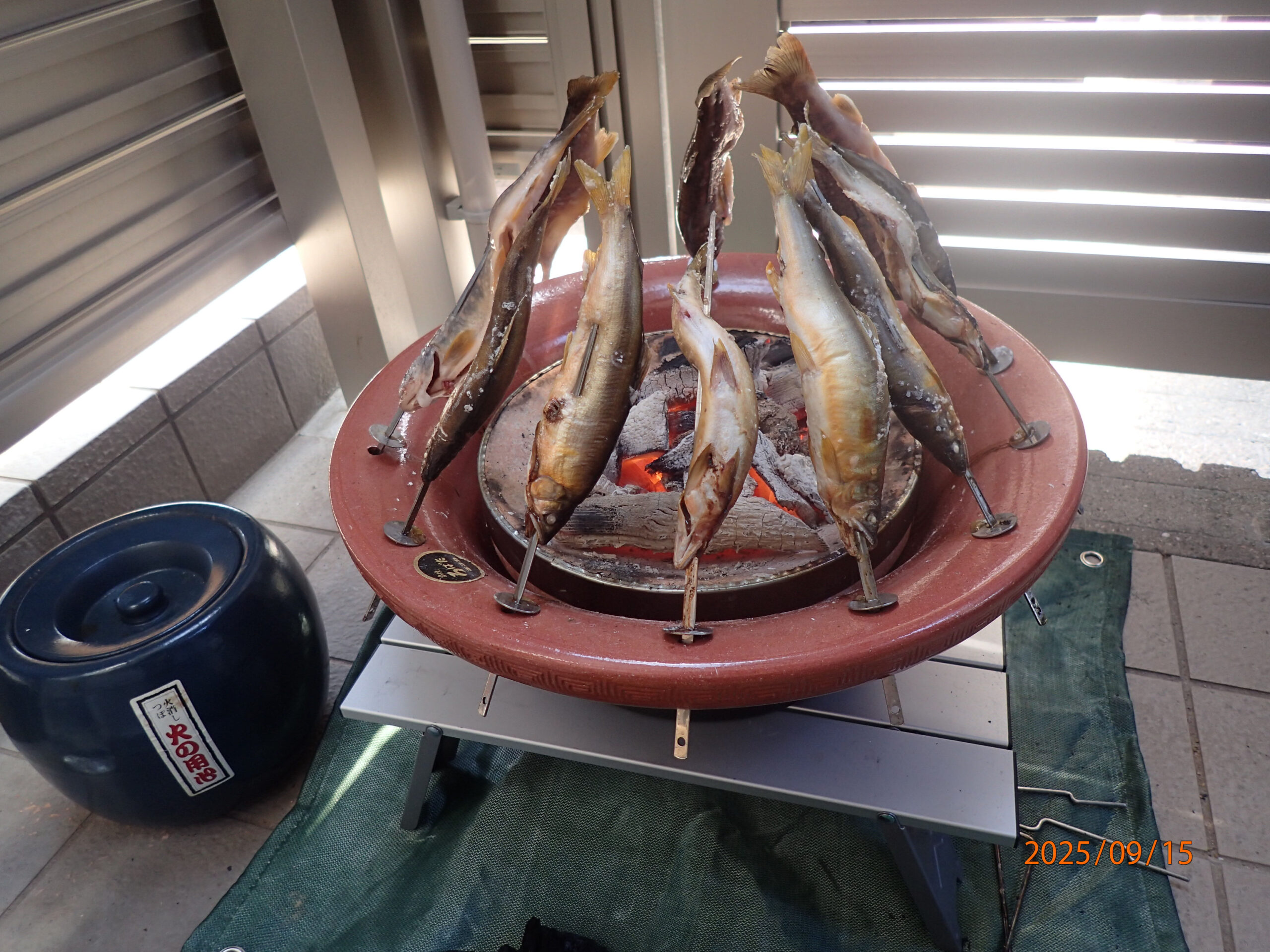 敬老の日の今日は孫たちが来てくれたので鮎を焼いた。