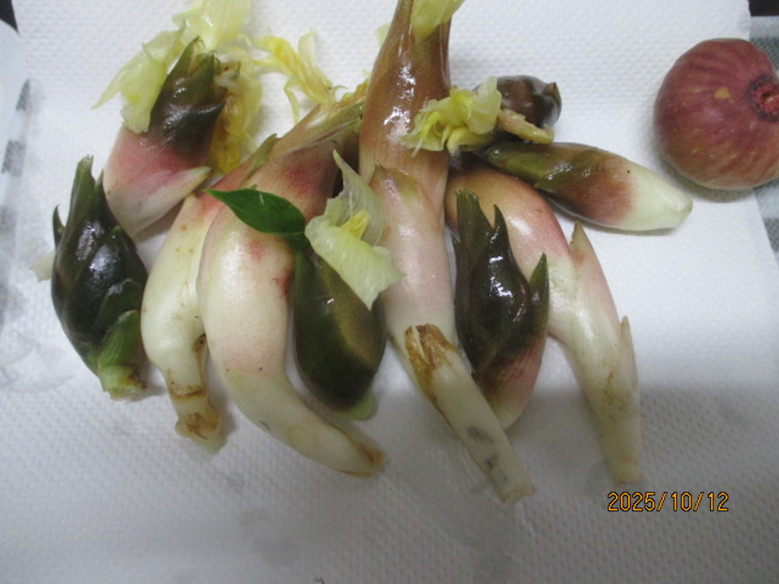 今朝採ったミョウガ10個とイチジク。↓