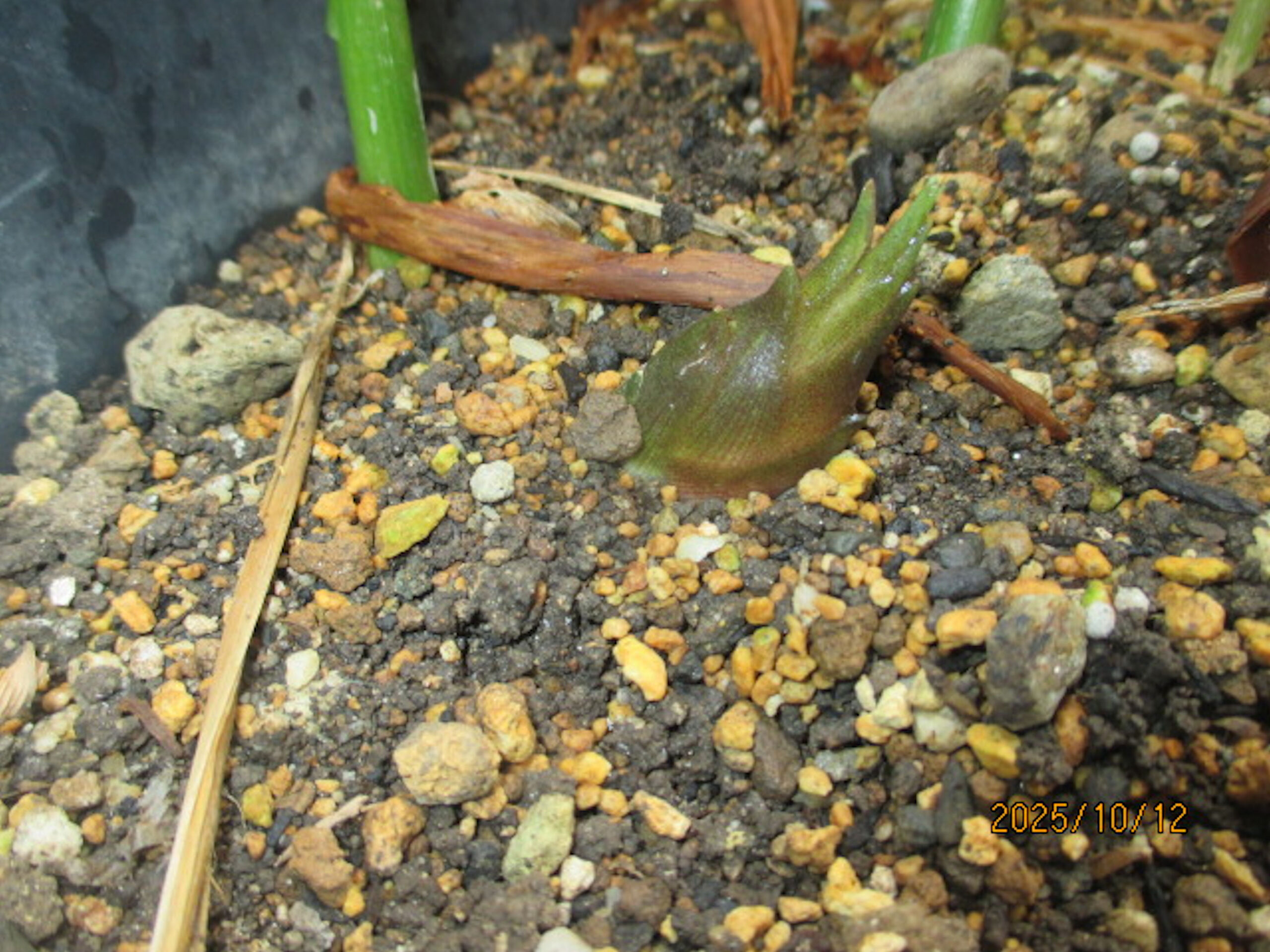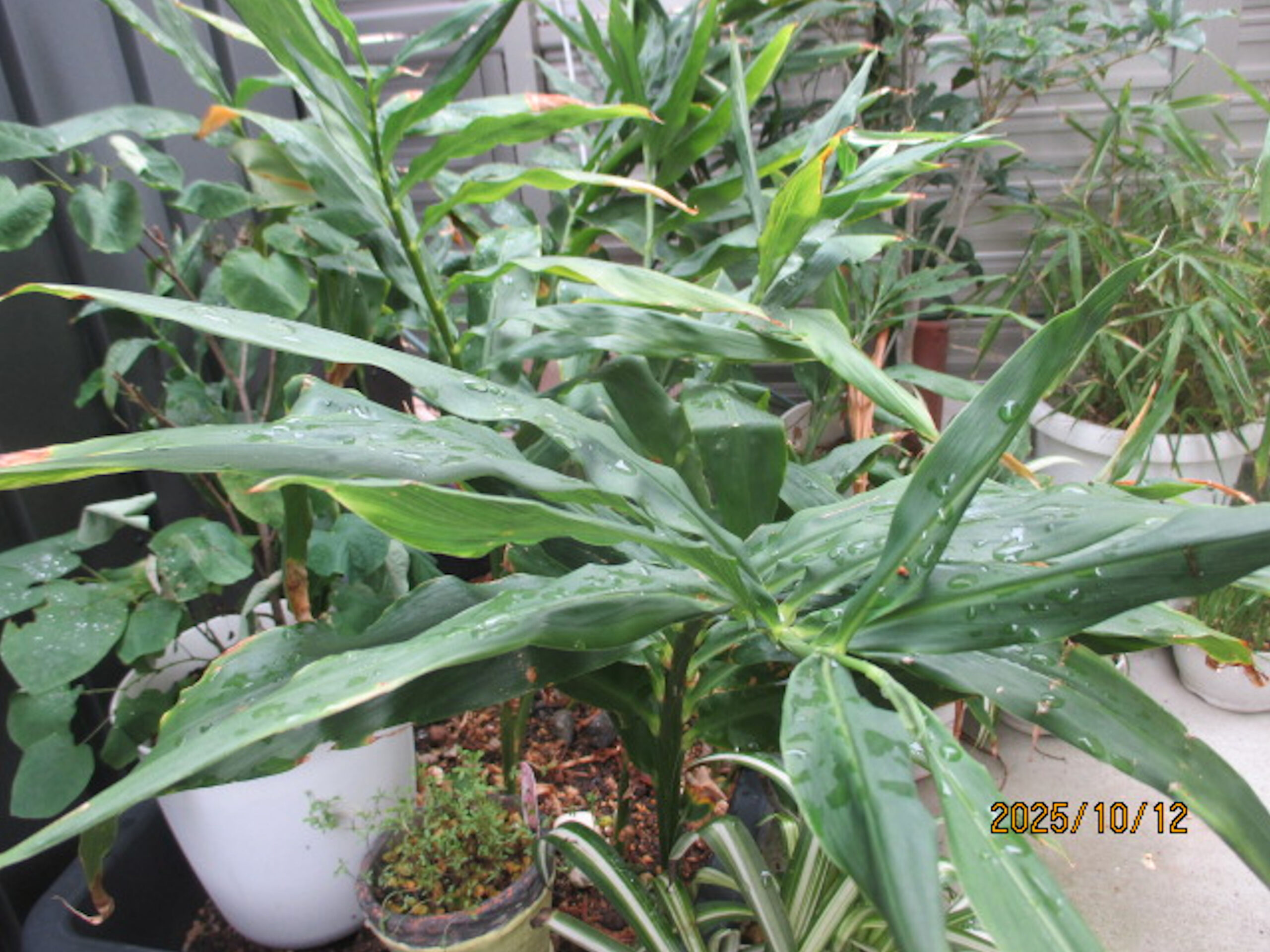 プランター栽培のミョウガ。↓