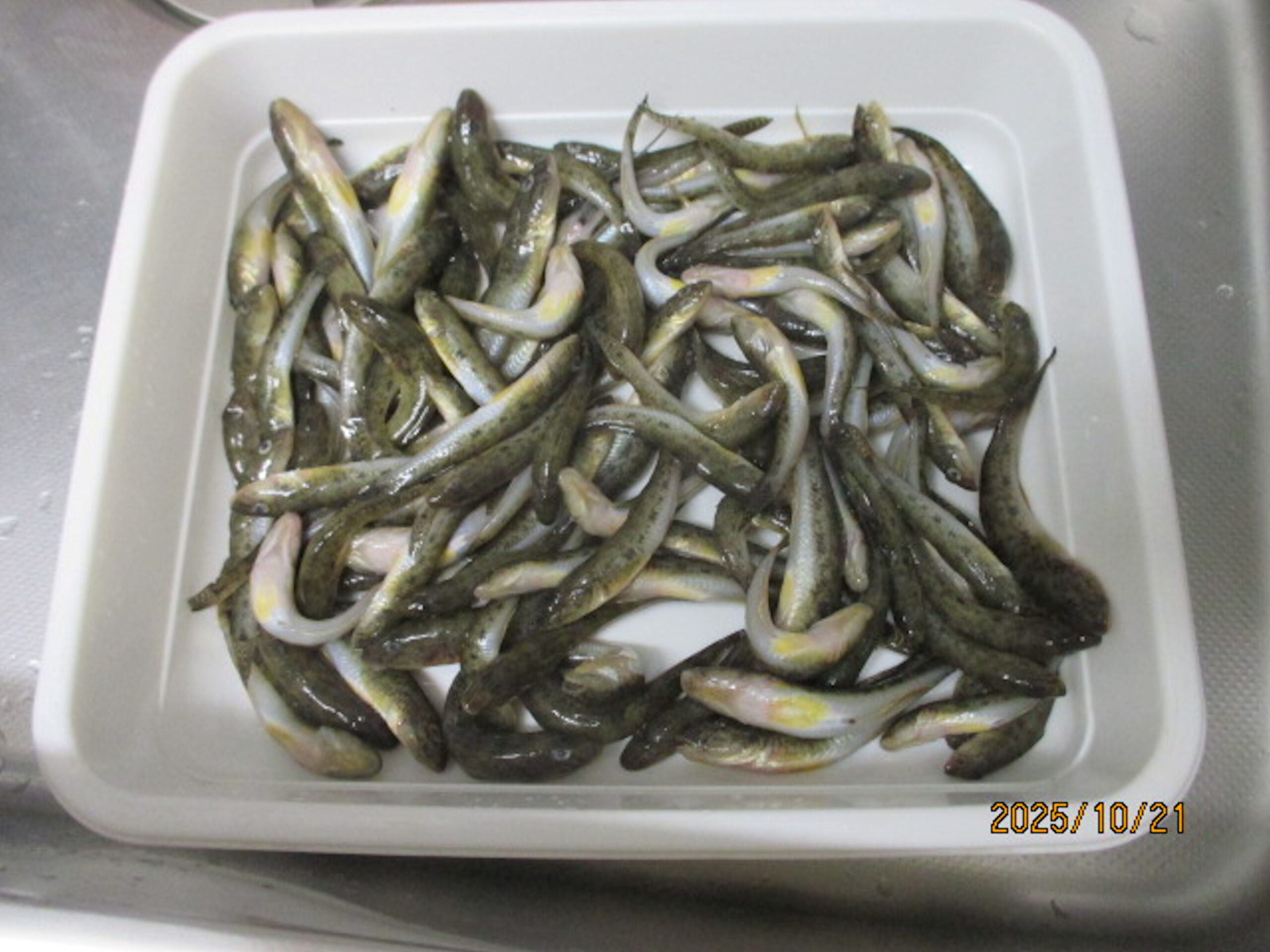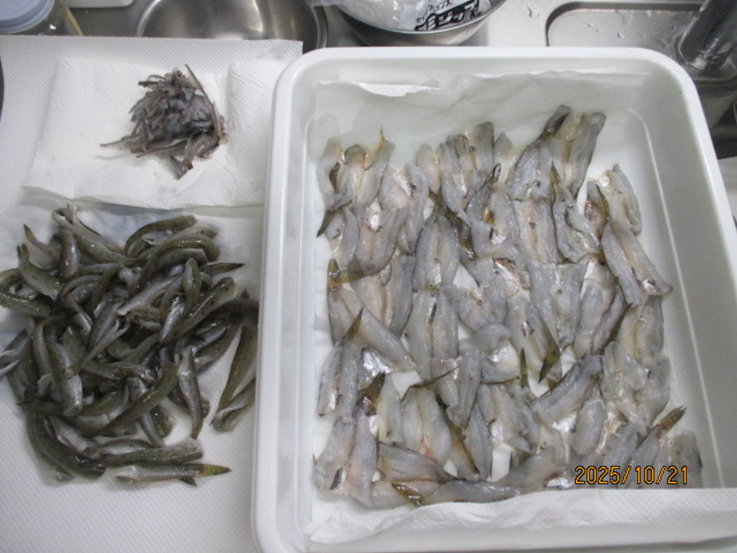 左は頭、ウロコと内臓を取ってから揚げ用(12cm以下のハゼ)にしたハゼ。