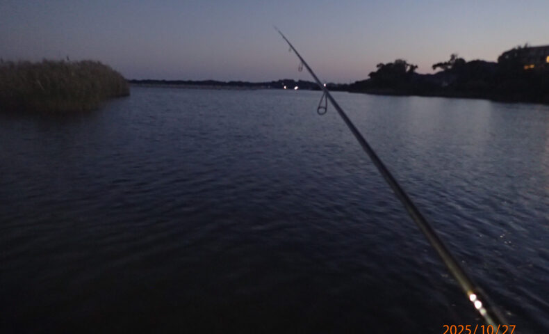 ここぞと思うポイントでも小型のアタリだったので見切って20時30分釣り終了。