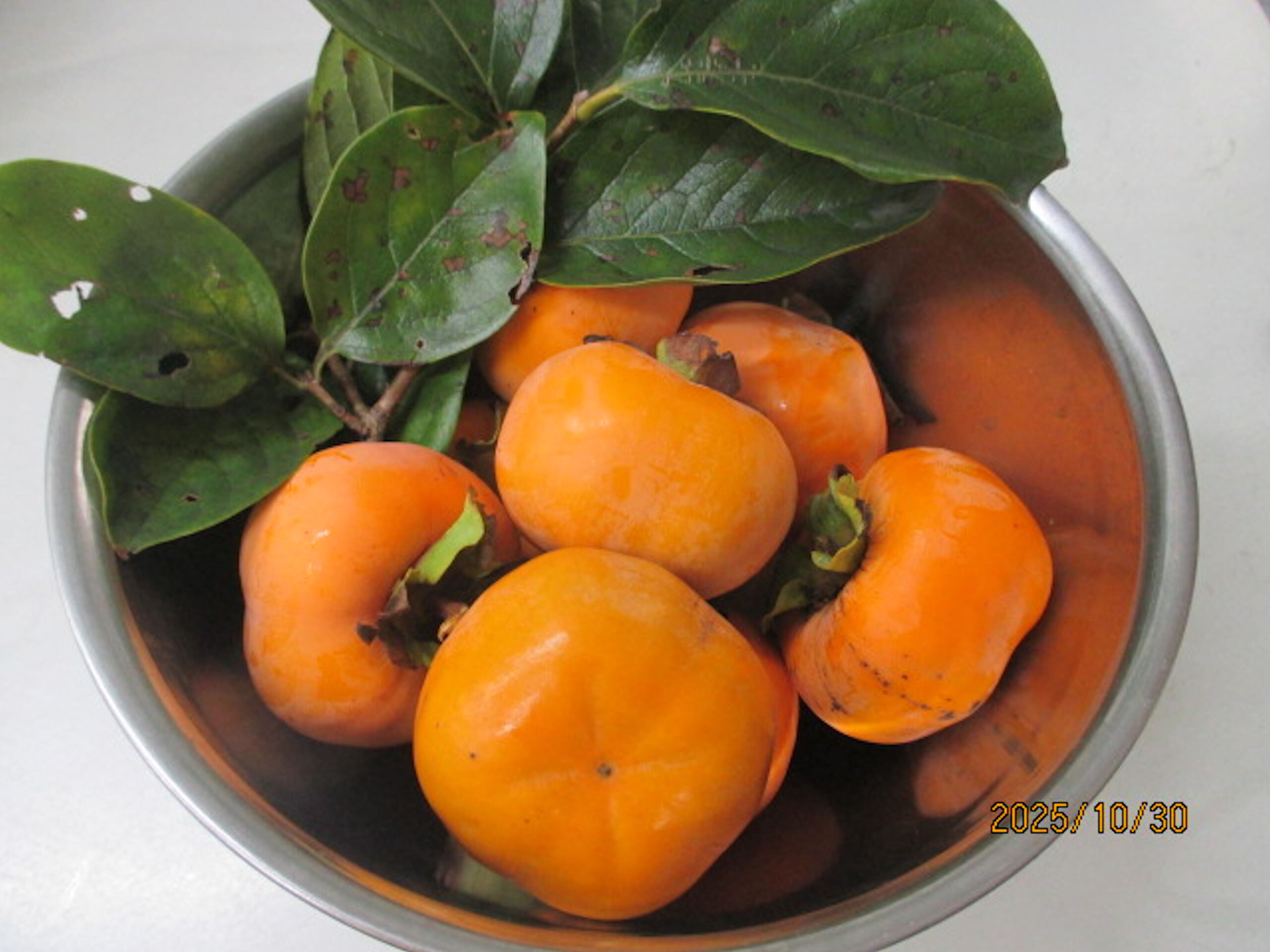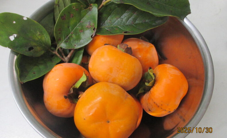 さて、今朝は隔年結果でわずかに生った柿の実を採った。