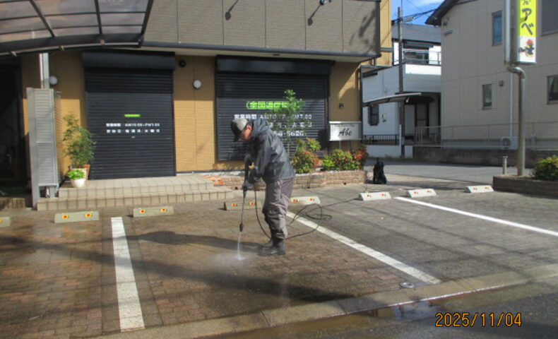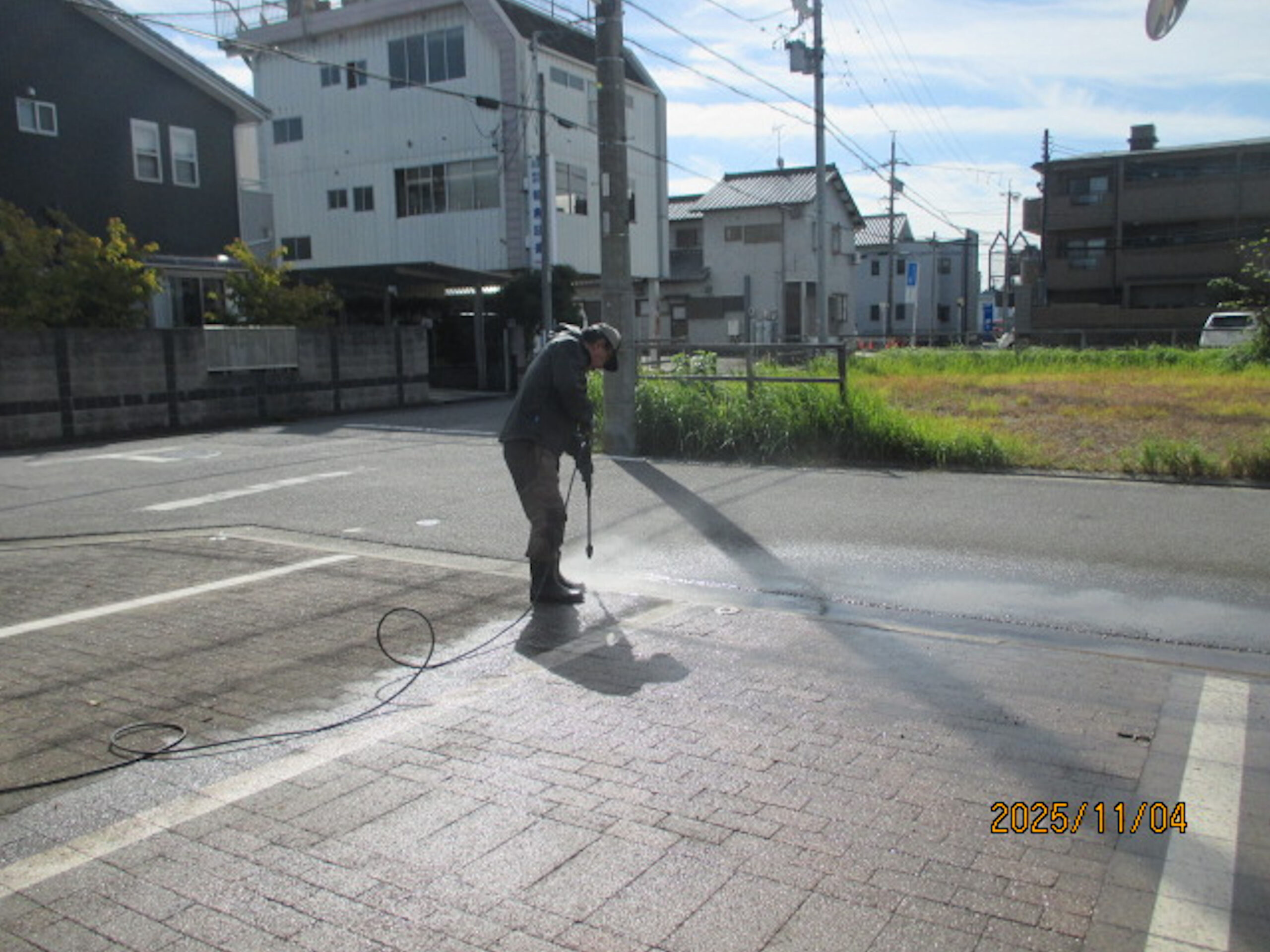 昨日の定休日はケルヒャーを使って駐車場の掃除をした。↓
