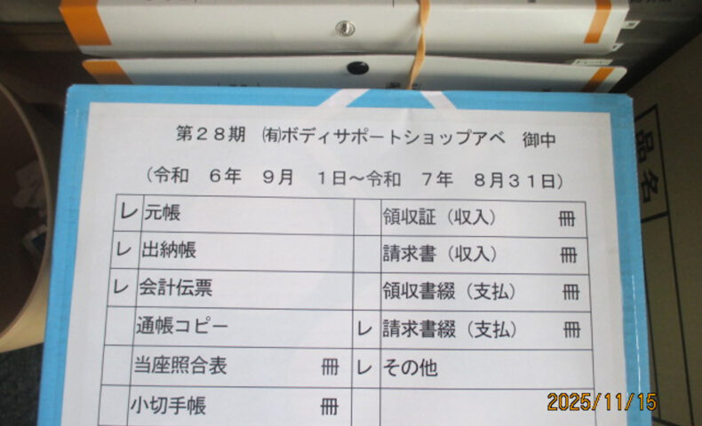担当のOさんが持って来られた1年分の書類。10年間保管。↓