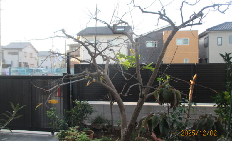 かなり殺風景になった柿の木。↑