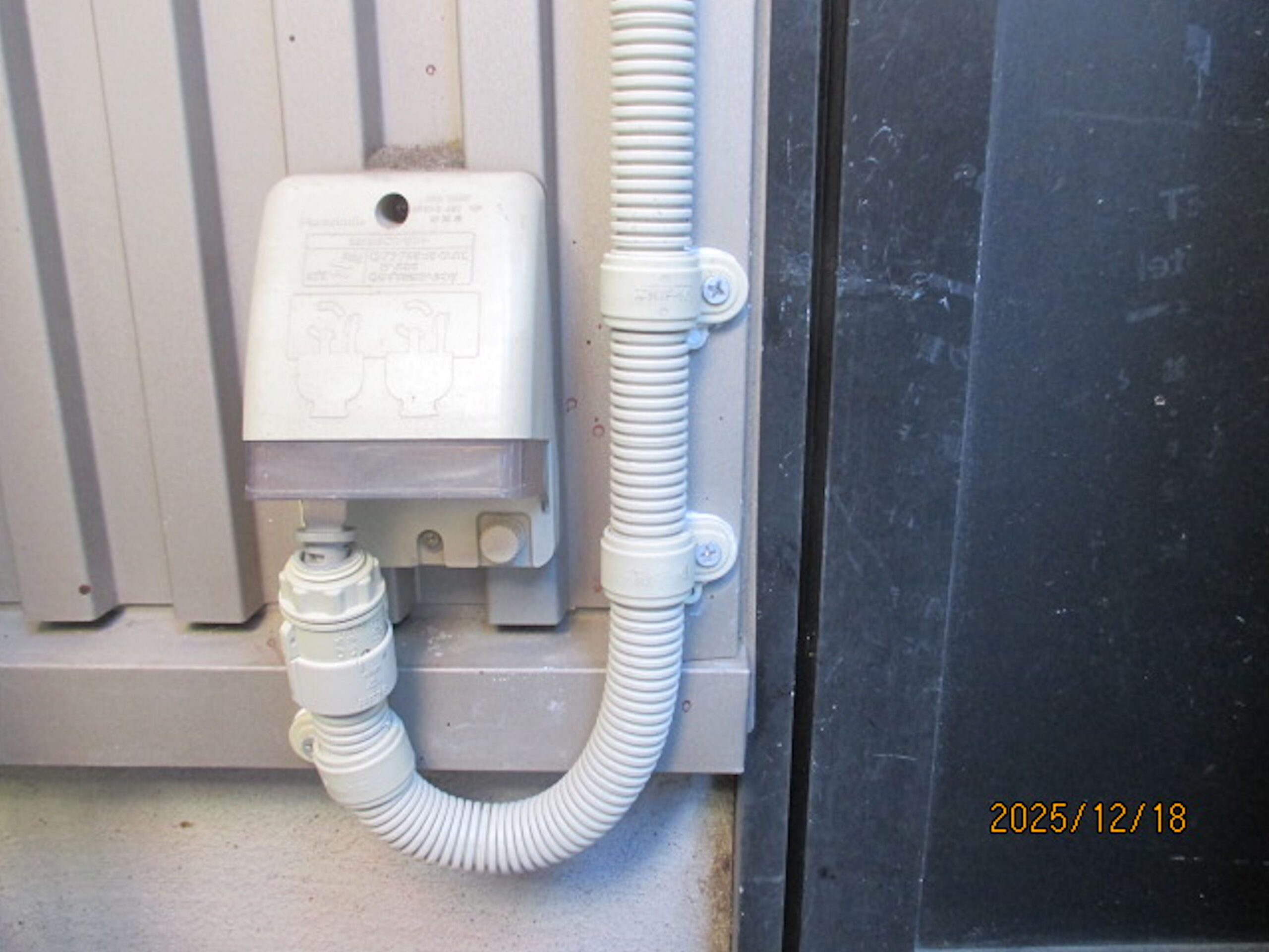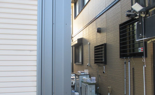 取付位置は店本体と倉庫の間。