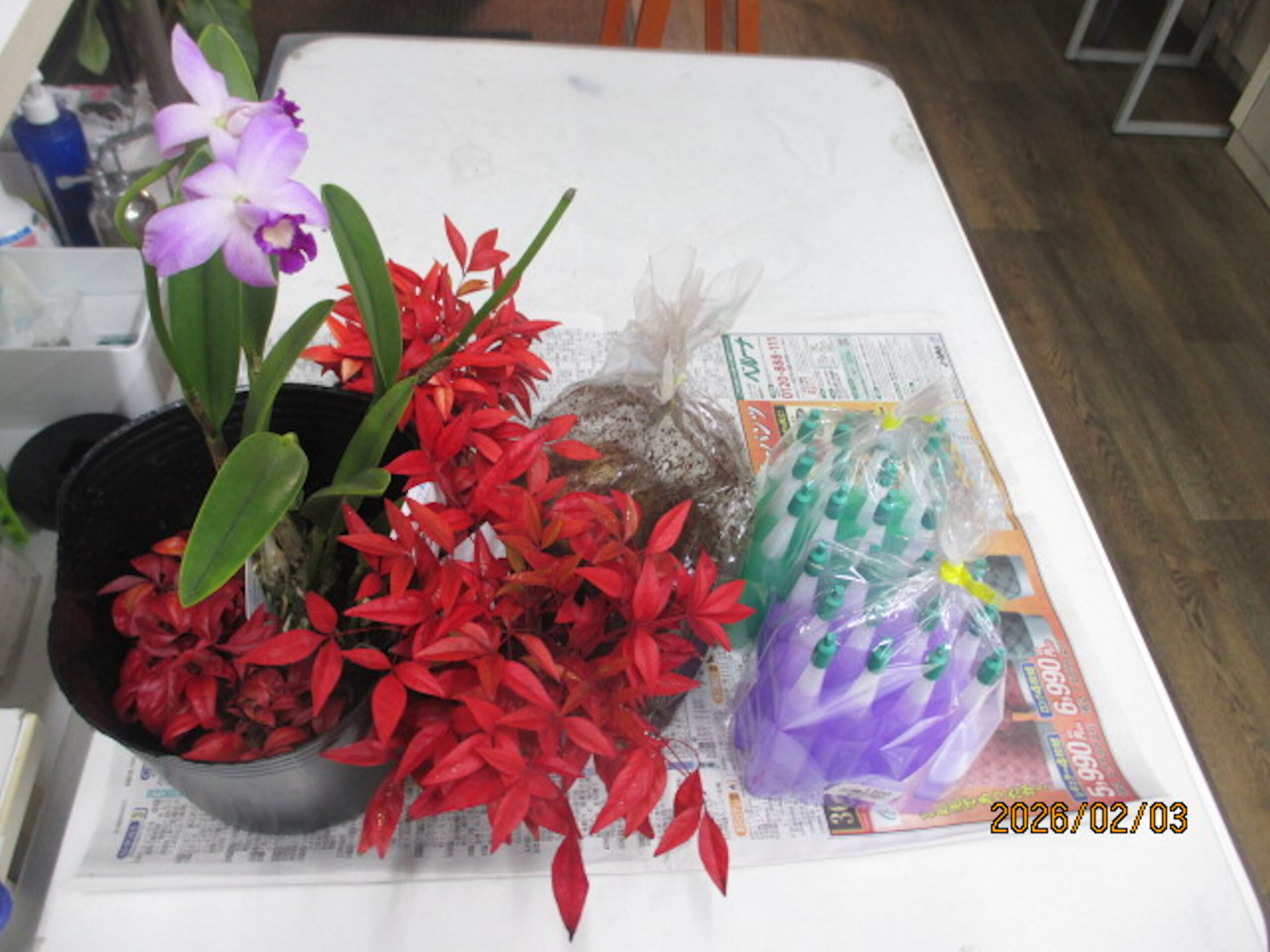 ランとおたふくナンテン、カサブランカの球根、液体肥料。