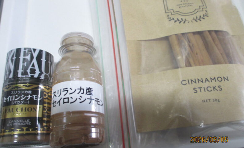 長年使用しているスリランカ産のシナモン。↑ コーヒーなどに入れて飲んでいる。