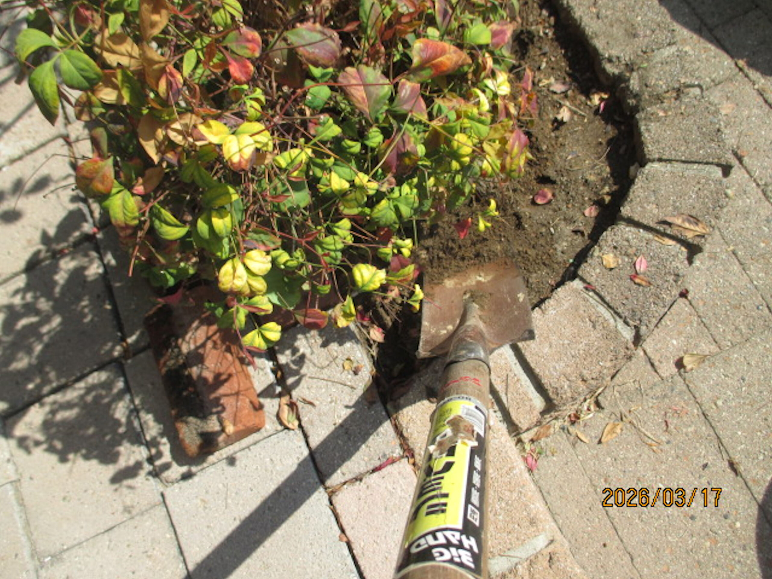 ここで使ったスコップは先っぽが土に喰い込みやすくした細長のスコップ。↑