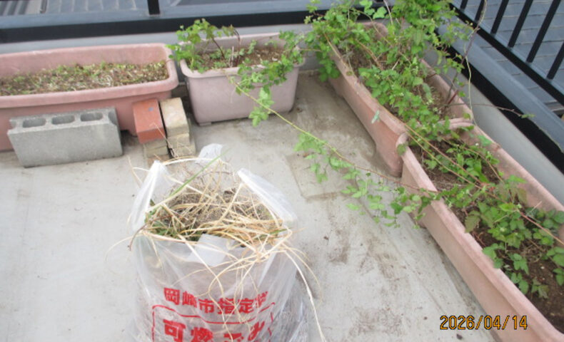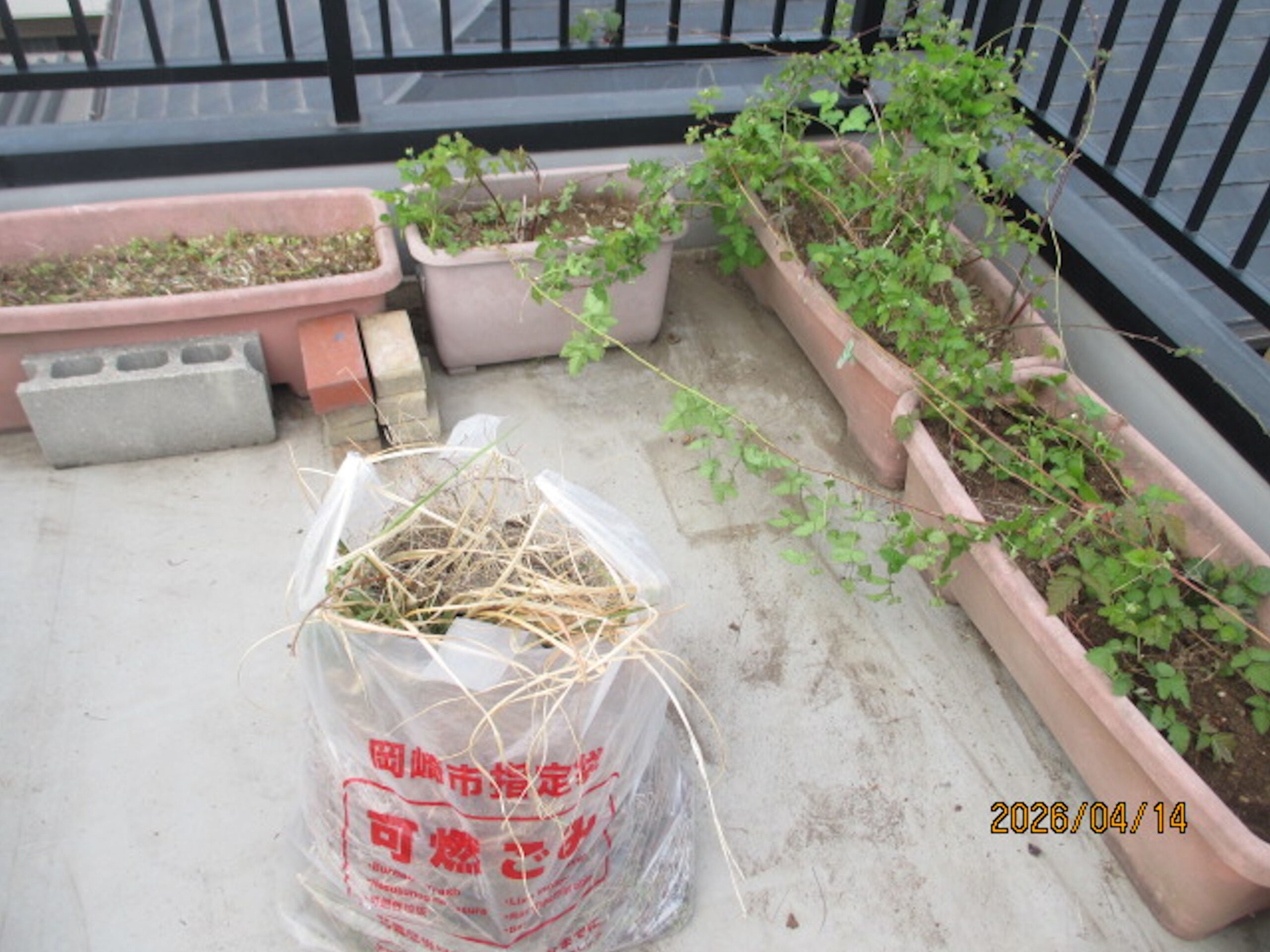プランターでブラックベリーを育てているが草の勢いに負けてしまっている。