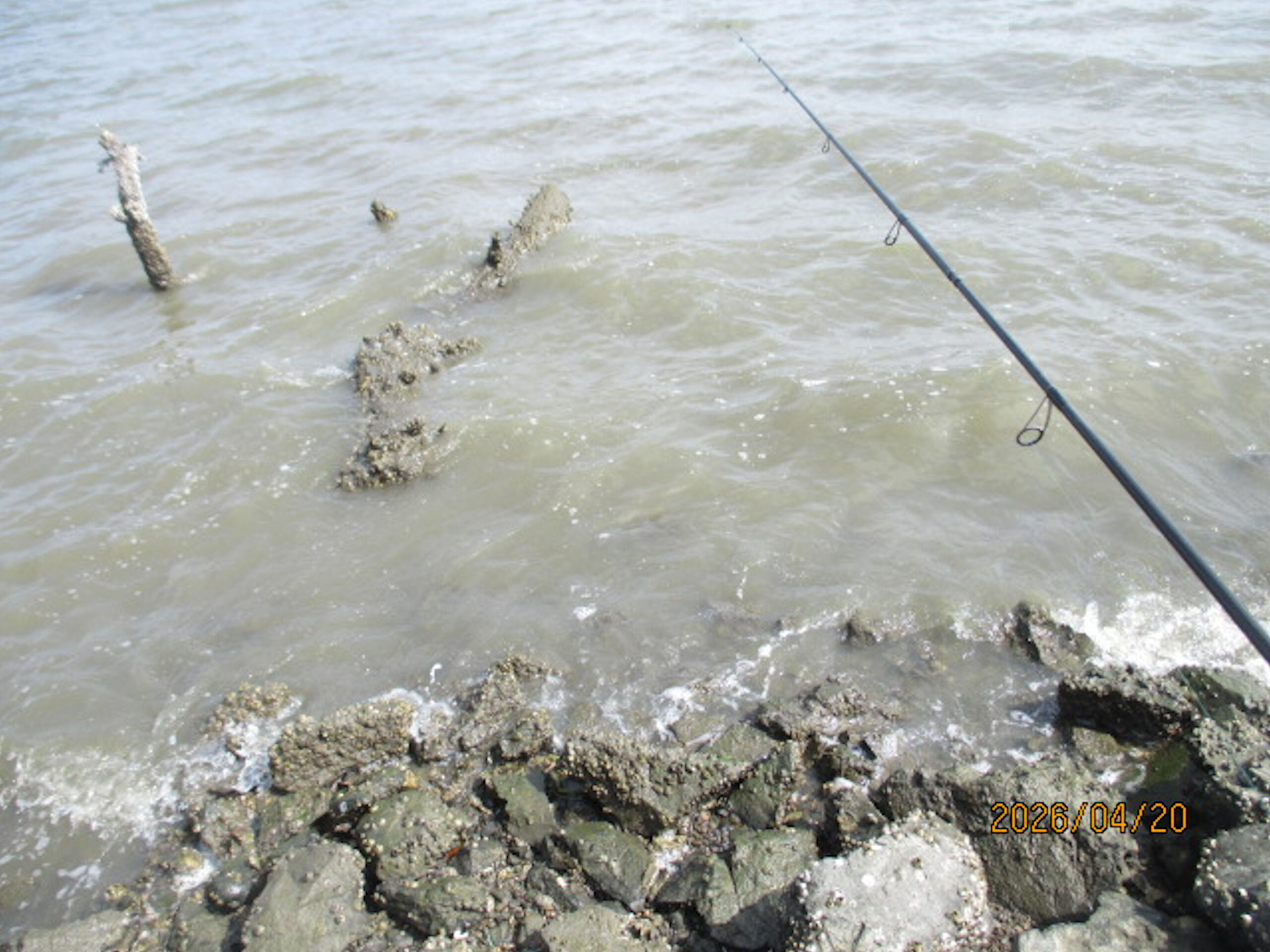 強風と濁りでクロダイが接岸していれば一発で当たる条件。↓