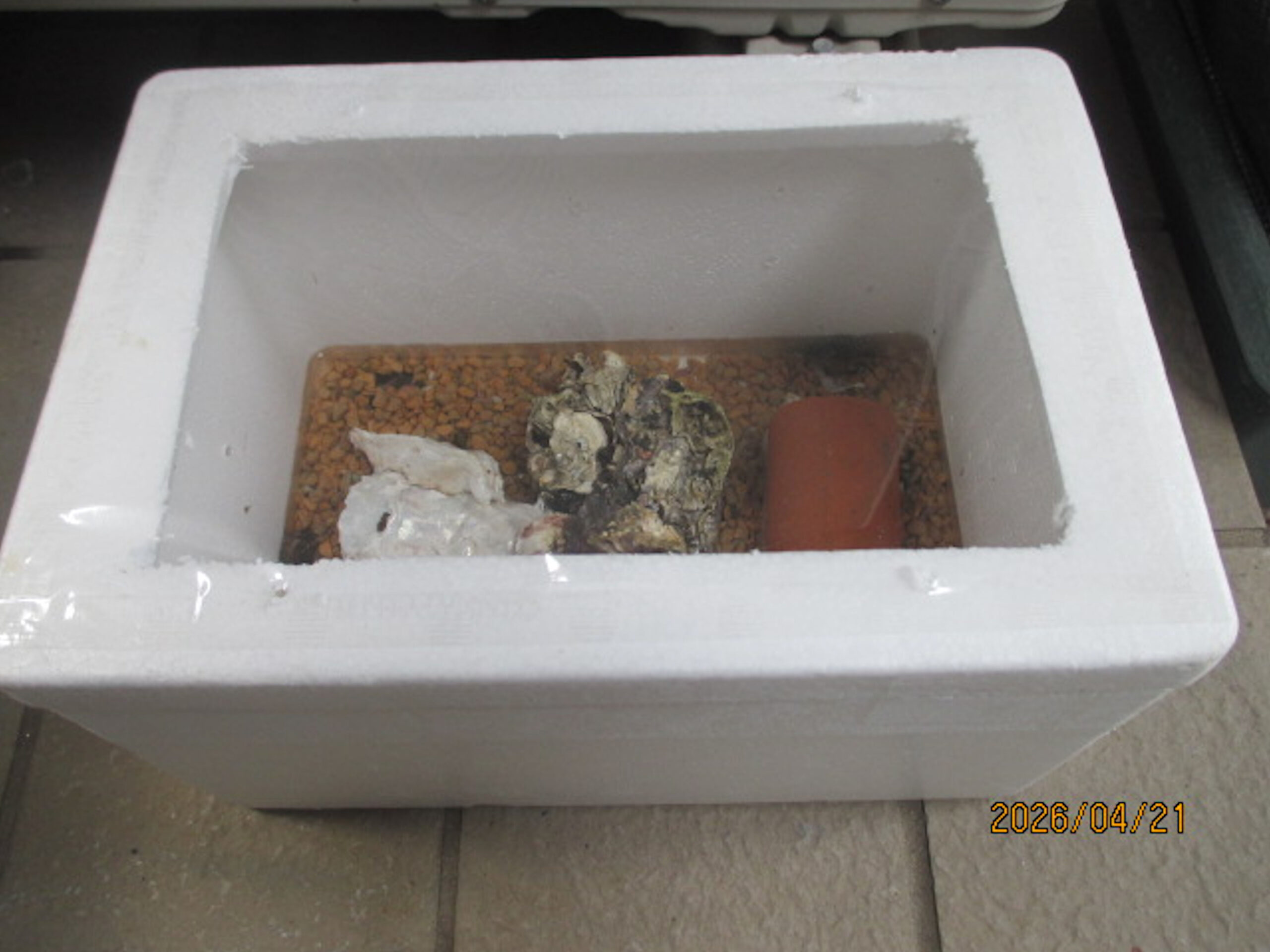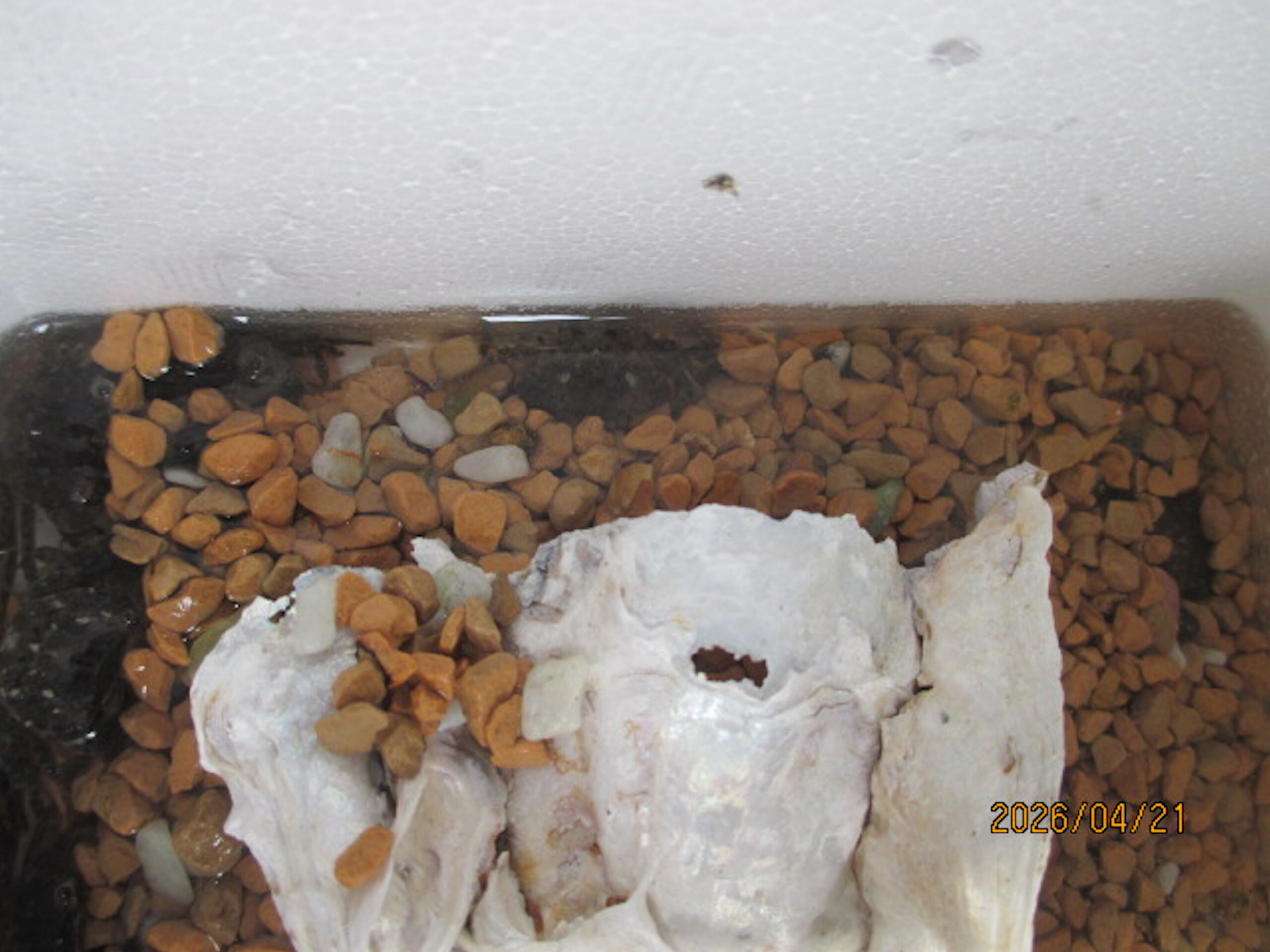蟹は砂に潜るがアカムシを与えると出てきてすぐ食べる。